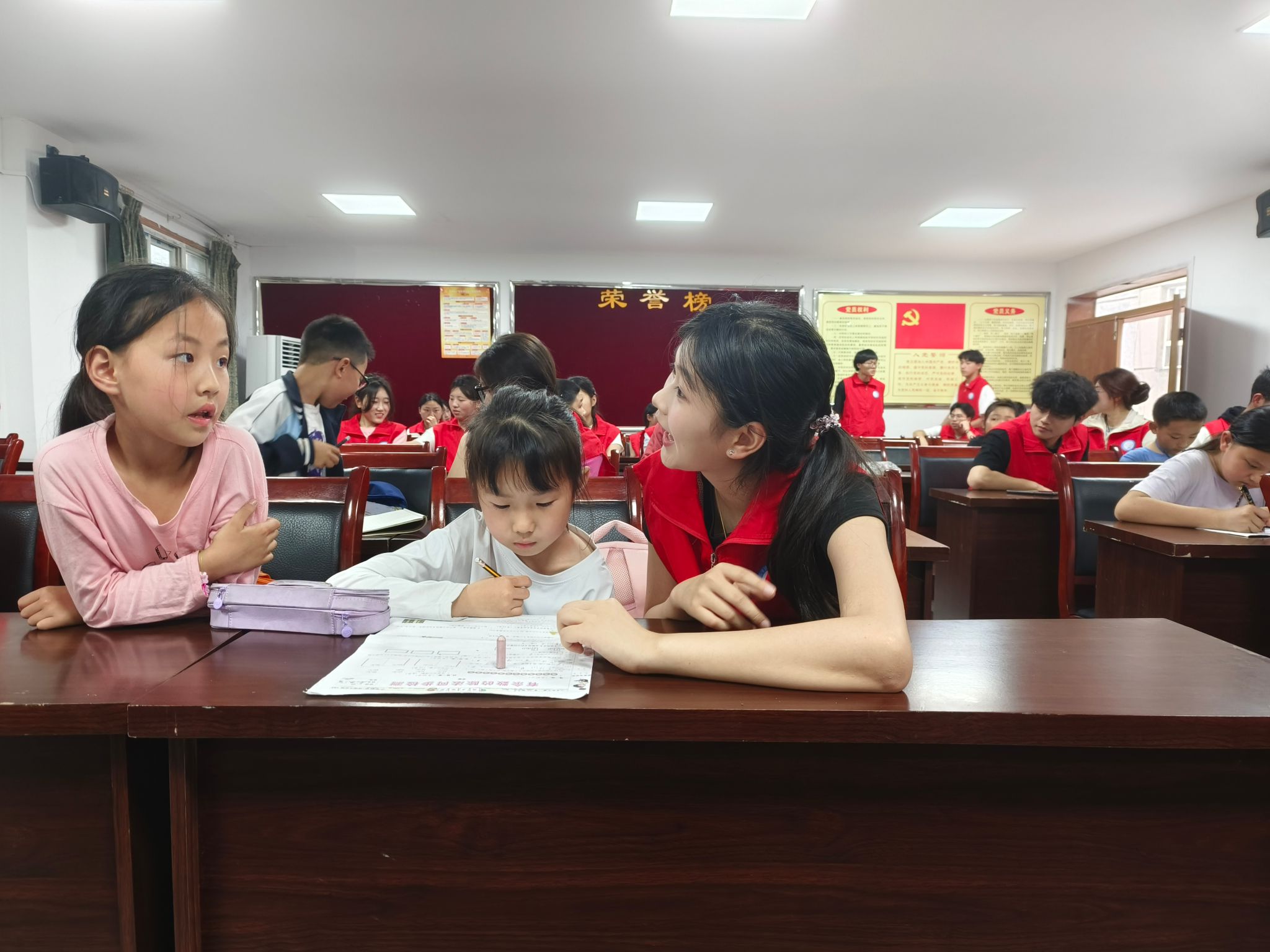 活动当天,小朋友们满怀期待地走进教室,志愿者们热情迎接,迅速拉近了彼此的距离。科普过程中,志愿者们采用了多种新颖的形式。主讲人精心讲解展示常见的诈骗场景,如网络诱骗、电话诈骗等,小朋友们听得非常认真。现场气氛十分活跃。针对年纪较小、理解能力稍弱的孩子,志愿者们一对一耐心讲解,结合简单的生活事例,让孩子们深刻理解反诈知识。