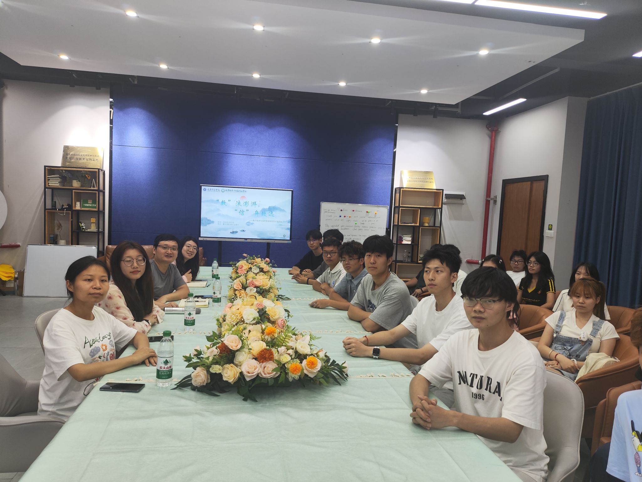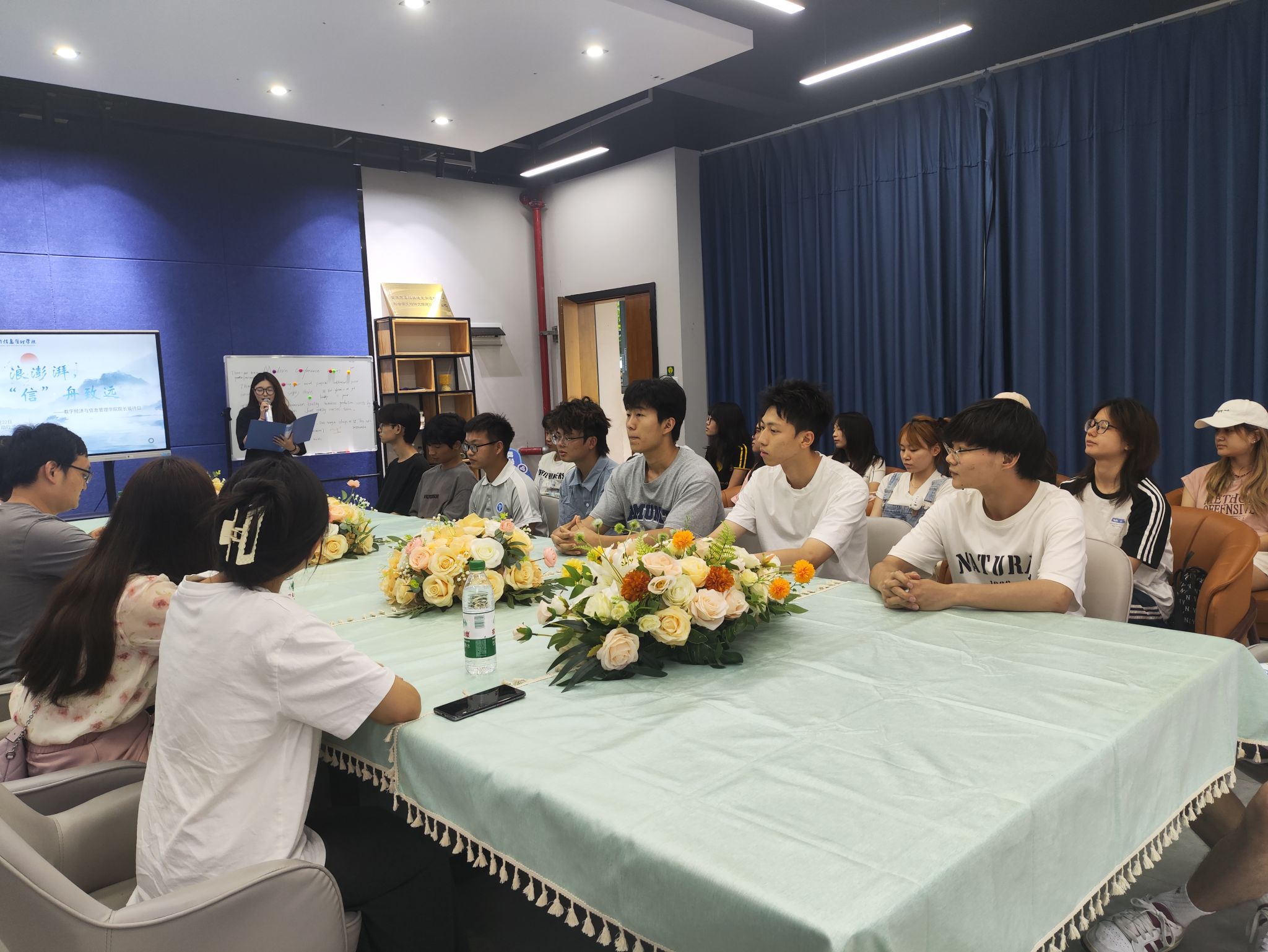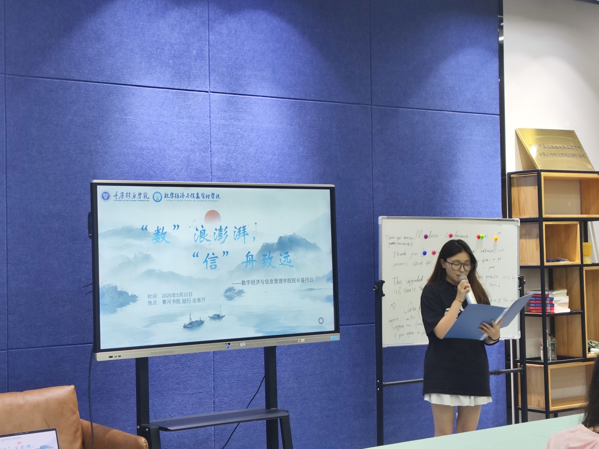 为更好地加强学院与学生之间的联系,促进学院、老师和同学们之间的沟通,数字经济商学院于2025年5月22日16:00在綦河书院励行会客厅举办了第十三周院长接待日活动。此次院长接待日有幸邀请到了数字经济商学院教学副院长王哲副教授、数字经济教研室骨干教师代表王瑜老师、赵鈺琳老师,辅导员吴倩蓉老师以及2023级数字经济专业学生代表参加。