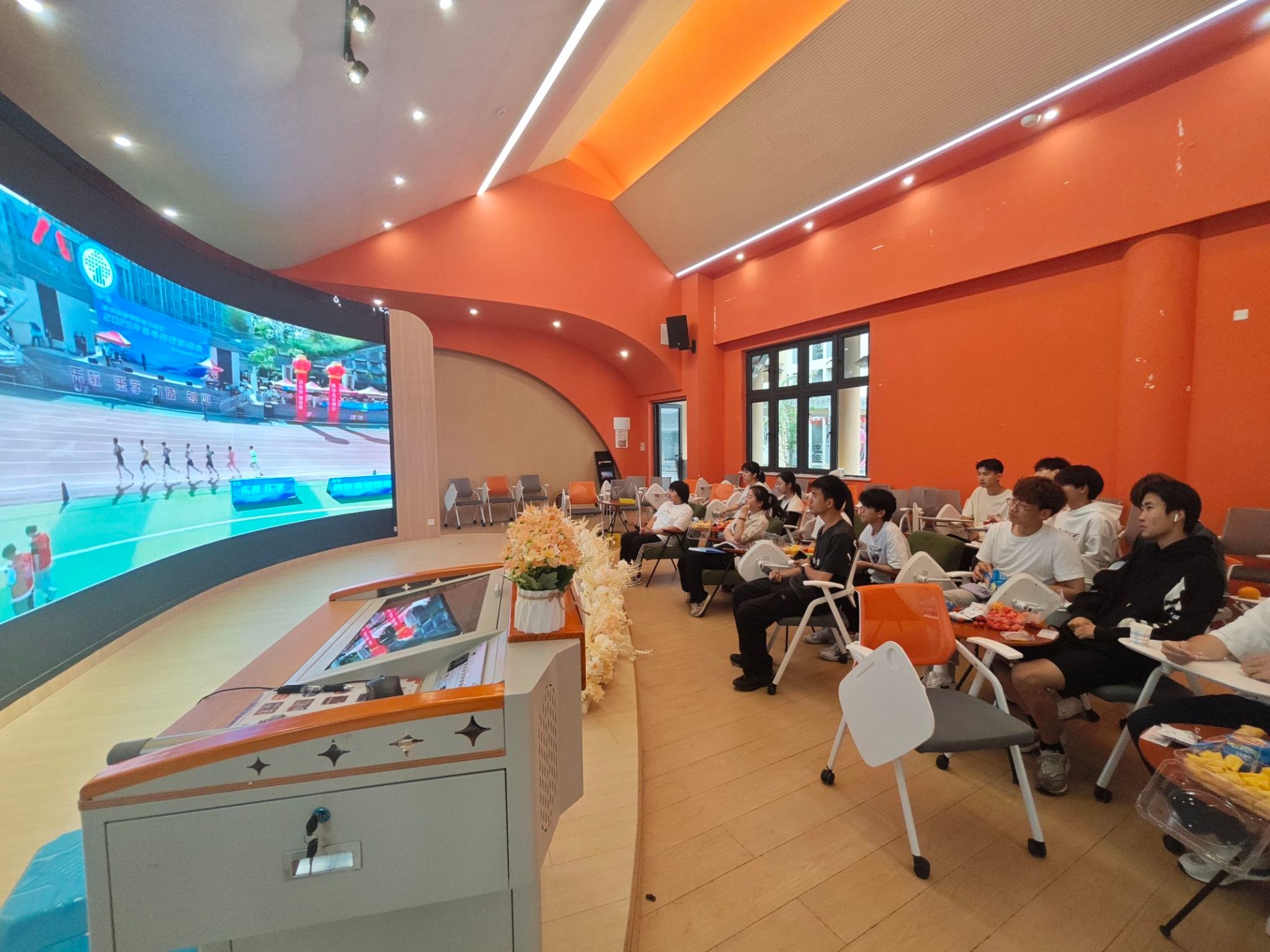 本次交流会由李宁林同学担任主持人。师生们首先观看赛场中的运动员们奋力挥洒汗水的时刻,见证了每一位运动员的精彩瞬间。活动第一项首先受邀上台的是运动员代表程秋予同学,他分享了自己在日常训练中和比赛的过程中取得好成绩的妙招——把握时间,注重细节。另一为运动员代表的朱玺臻同学,从她生动形象并且包含了真挚的感情的发言里我们体会到了背后她对体育竞技的付出与热爱,同时也引发了我们对竞技体育的深切思考,对“奔赴美好”更有信心,对“热血沸腾,永不放弃”的竞技精神有更深刻认识。