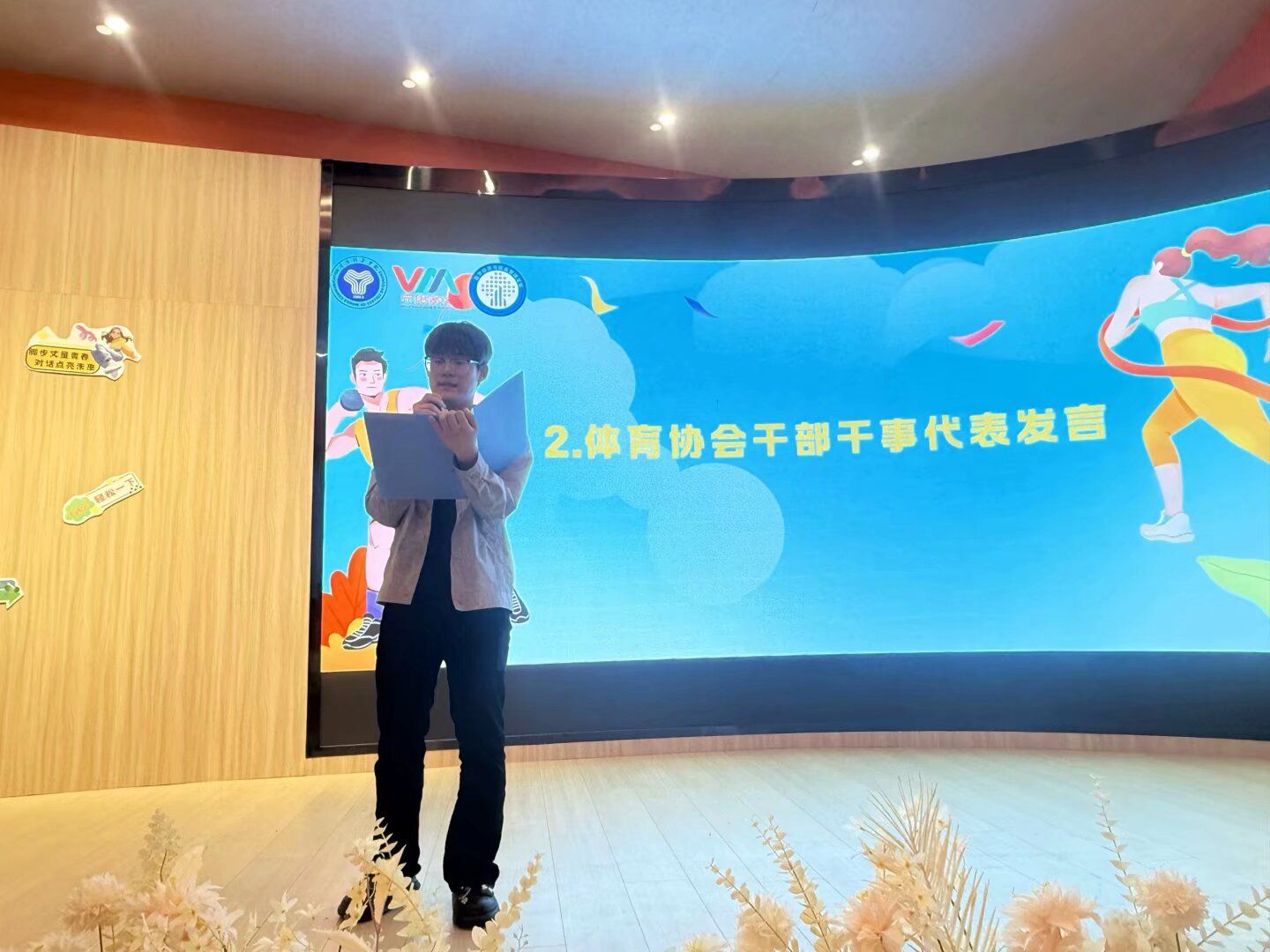 数字经济与信息管理学院体育协会的代表丁伟同学,指出了比赛中优秀的成绩离不开运动员们在日常积极的训练和比赛中拼搏的精神,字里行间无不透露着对运动员的信任。竞技体育板块指导老师付孟文的讲话中充满了对学生的关爱与期待,让在场运动员们都感受到了被重视和鼓励的力量。希望大家一起共同努力,再创辉煌。这种积极向上的态度,这不仅激发了大家对体育运动的兴趣和热情,也让每个学生能更加自信地面对生活中的各种挑战。