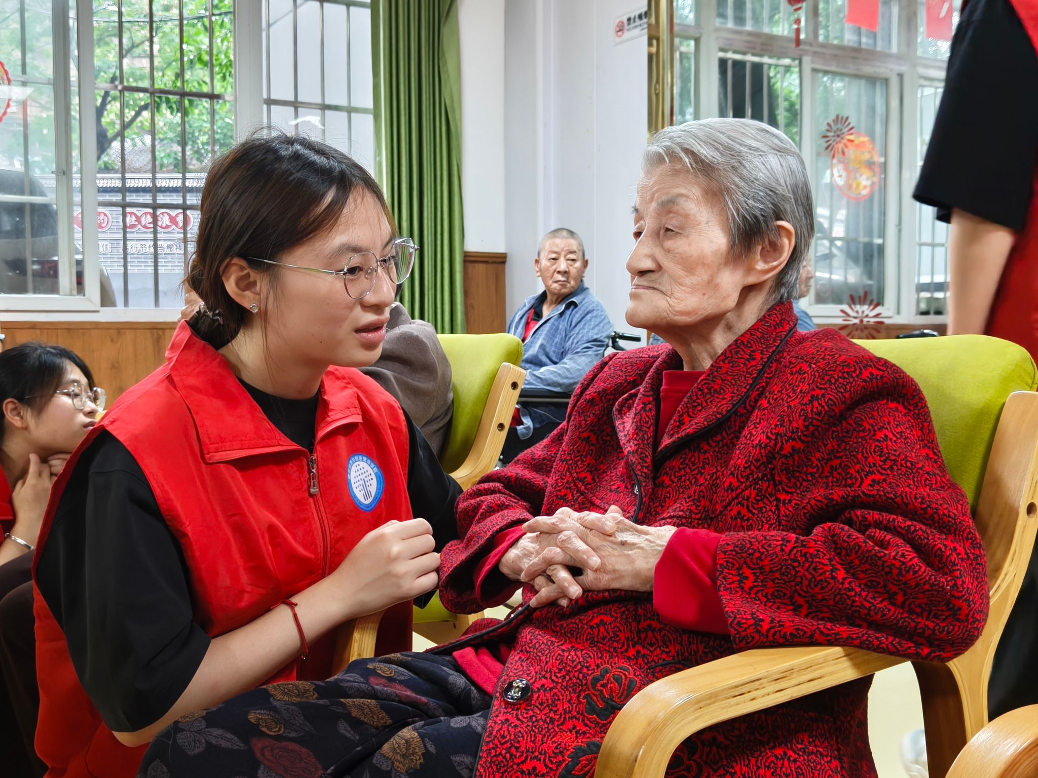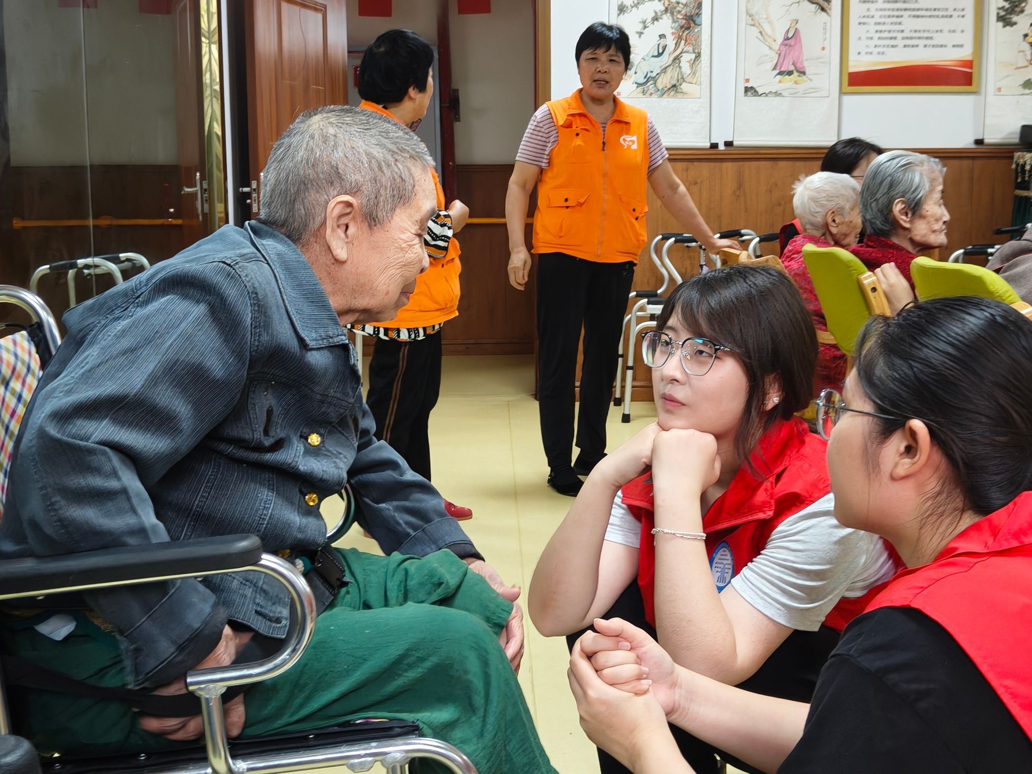 活动在活力满满的手势舞表演中拉开帷幕。志愿者们用明快的节奏、灵动的手势,搭配温馨的背景音乐,瞬间吸引了老人们的注意。随后,志愿者与老人共同参与的广场舞蹈将现场气氛推向高潮。大家跟着音乐舞动起来,在轻快的旋律中舒展身体,笑声此起彼伏,打破了养老院午后的宁静。