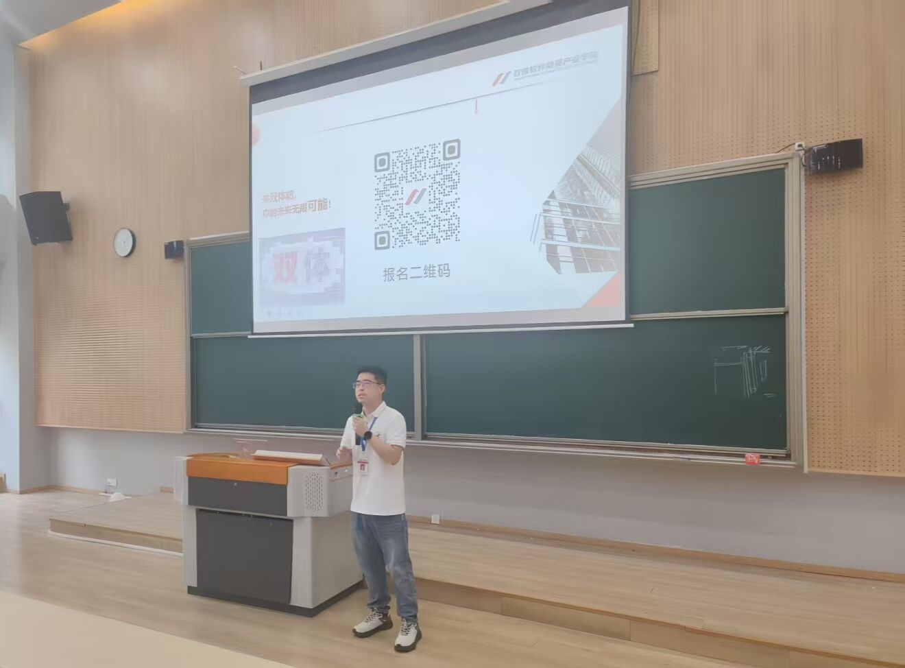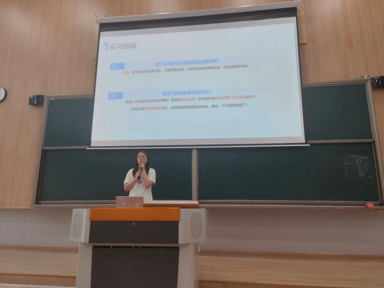 会上,我们邀请了双体精英产业学院,钟玲老师,李天宇老师为我们讲解就业以及双体运营体系。给同学们讲解就业实习等问题。以及邀请我们数信学院达晓同学为我们分享他在双体的一些经历。激发同学们的热情。