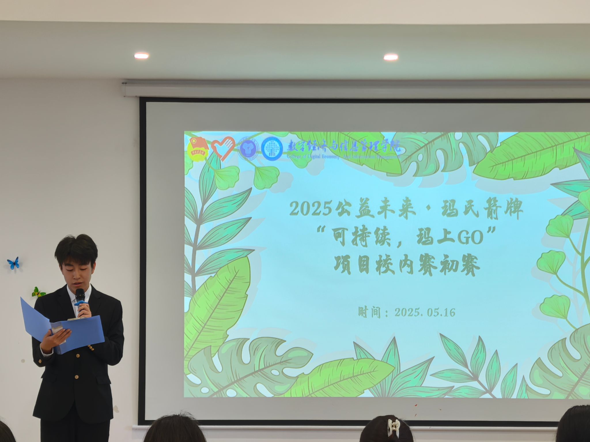 为响应国家环保号召,鼓励青年学子投身可持续行动,为环境保护贡献力量,5月16日16:00,数字经济与信息管理学院青年志愿者协会于南江书院庸言·研讨互鉴讲堂成功举办“可持续,玛上GO”项目校内院赛赛。本次活动邀请到志愿服务板块指导老师张静、彭仙,辅导员张浩晨,社团活动板块指导老师张倩、李巧莹,宣传板块老师田园园,以及艺术修养板块指导老师吴倩容担任评委。