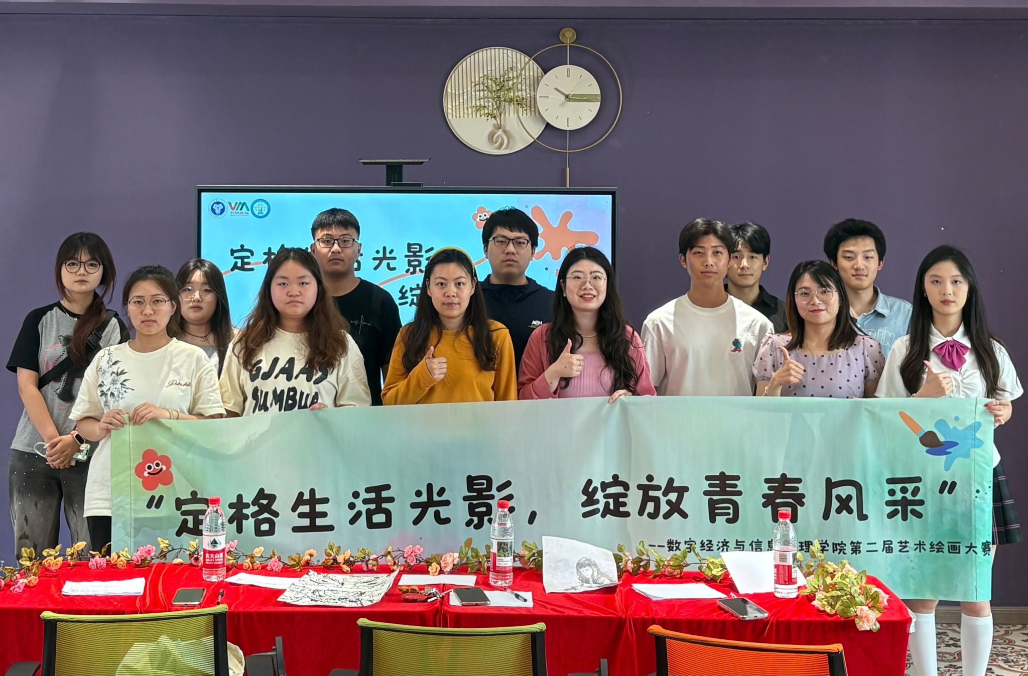 2025年5月9日15:00,数字经济与信息管理学院"定格生活光影,绽放青春风采"第二届艺术绘画大赛在观云书院芒种文华书吧圆满收官。比赛以“记录生活光影,展现青春活力”为主题,吸引众多绘画爱好者参与,共征集26份原创作品。经初评遴选,10件佳作入围决赛,选手们以多元艺术形式呈现生活感悟与青春激情,为观众献上视觉与情感交织的艺术盛宴。本次活动特别邀请到数字经济与信息管理学院团总支书记潘锐、艺术修养与实践板块指导老师吴倩蓉、志愿服务板块指导教师彭仙作为评委嘉宾出席,从专业维度严格评审,确保赛事公正权威。此次活动既为艺术学子搭建展示平台,更以青春视角解读生活美学,为校园文化建设与学生艺术素养提升注入新动能。