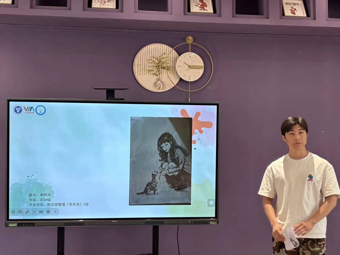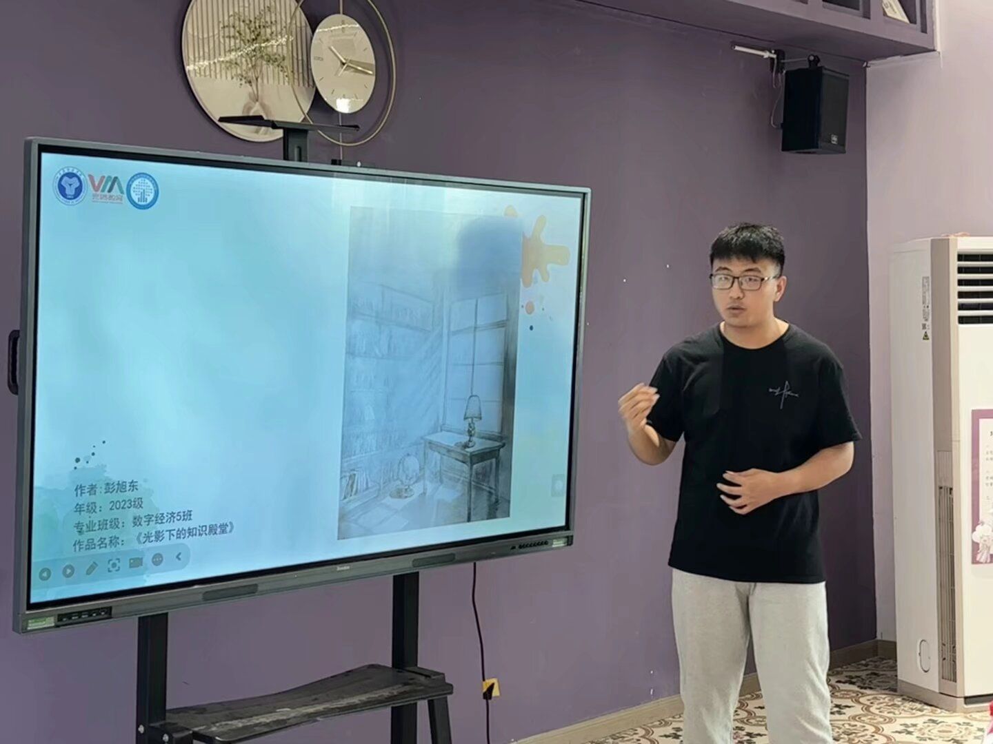 此次活动决赛入围的10幅作品以不同风格与主题呈现在评委老师面前,选手们依次上台,结合作品创作背景与灵感来源进行讲解,展现了绘画背后的故事与情感。