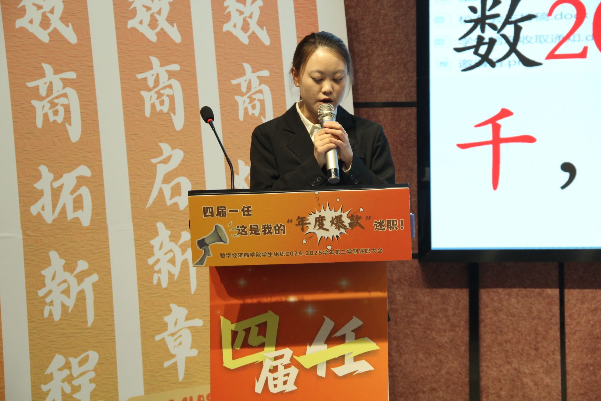 志存高远铭初心,步履不停笃于行。本次述职大会的成功召开,不仅是对过去一学期学院工作的全面梳理与总结,更为未来工作的高质量发展明确了方向。站在新的起点,数字经济商学院团总支学生会将秉承“敦品励学,明理精业”的院训精神,用实际行动践行“全心全意为同学服务”的初心,继续满怀着热情与积极的态度,无畏迎接新挑战,奋力推动学院发展迈向新高度!