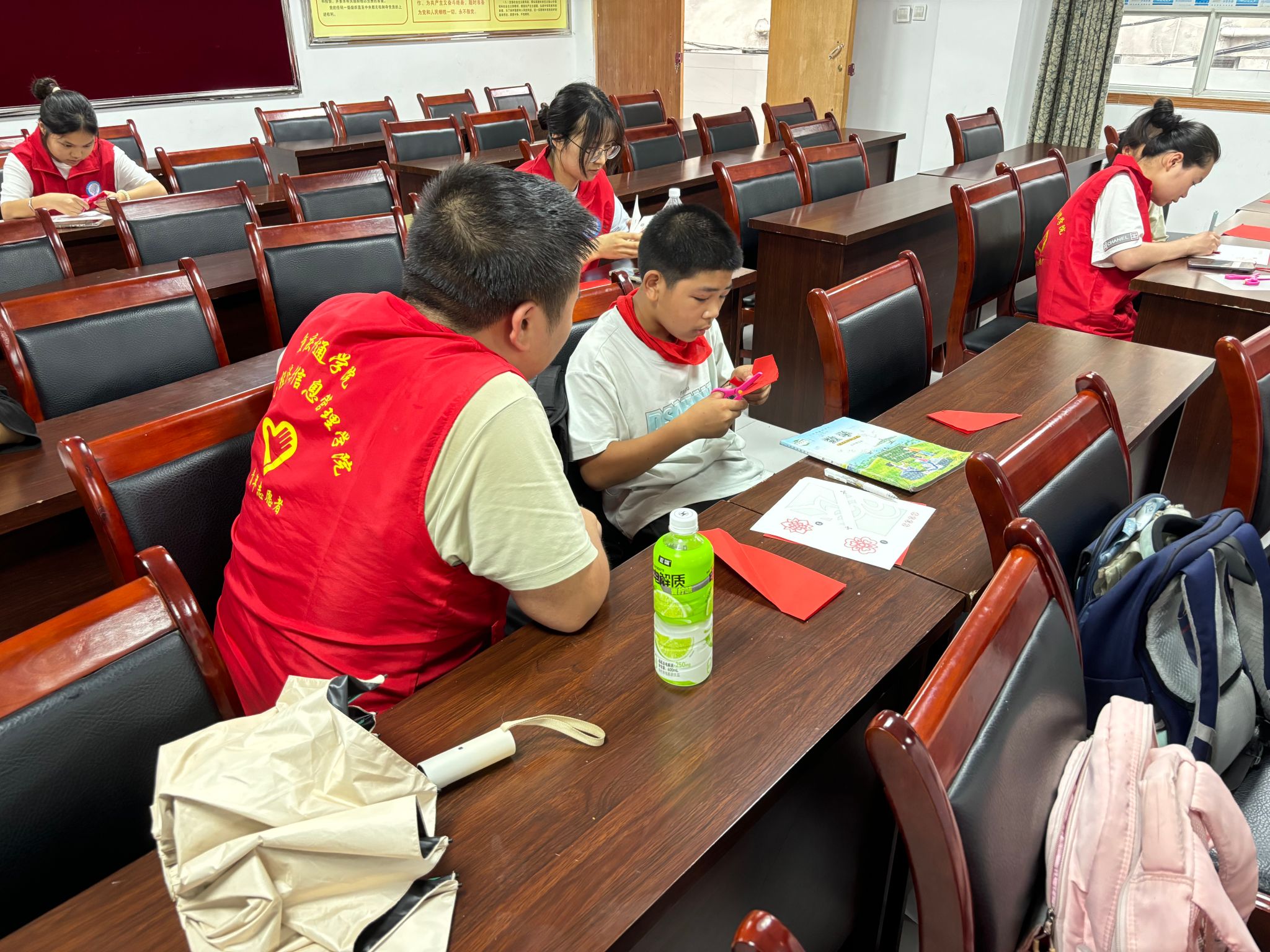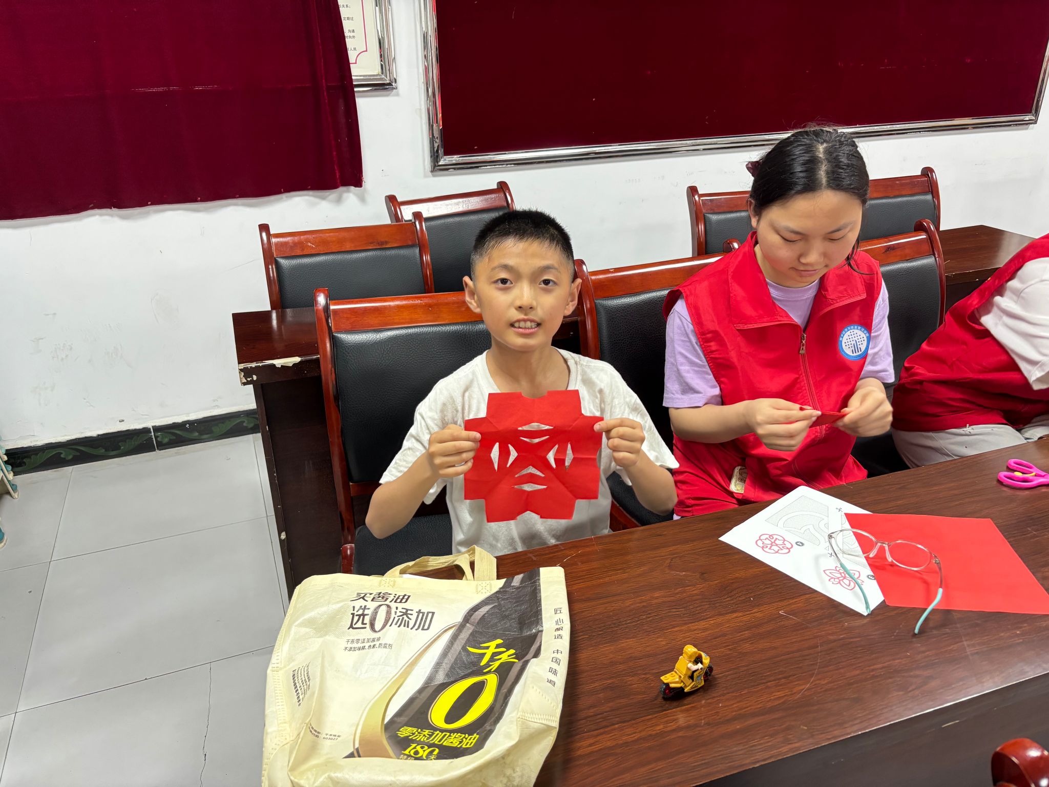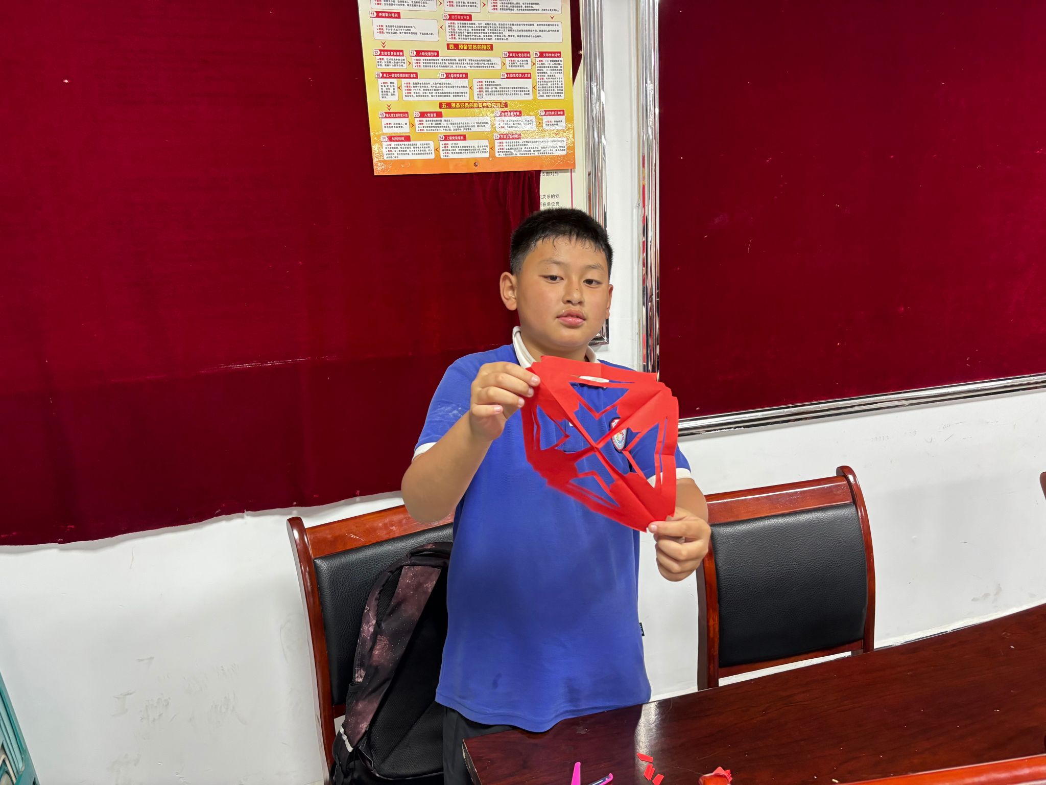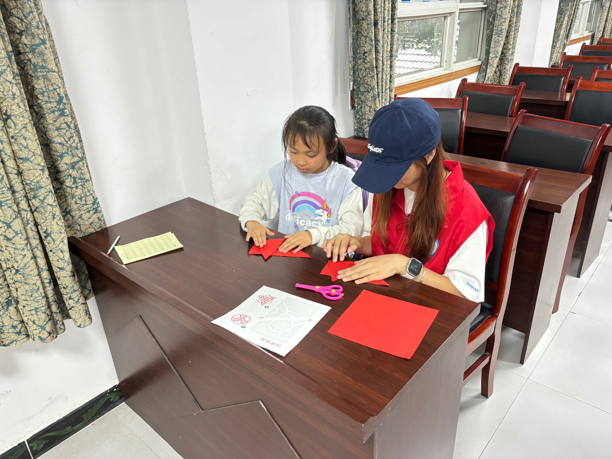 活动现场,剪纸技艺教学成为最受孩子们欢迎的环节。志愿者们耐心细致地从基础折纸教起,手把手指导孩子们如何画样,循序渐进地传授对称剪等剪纸技法。孩子们专注地跟随志愿者的步骤,手中的剪刀在彩纸上灵活游走,不一会儿,一幅幅简单却充满童趣的窗花、生肖剪纸作品便跃然眼前。孩子们看着自己亲手完成的作品,脸上洋溢着自豪与喜悦。