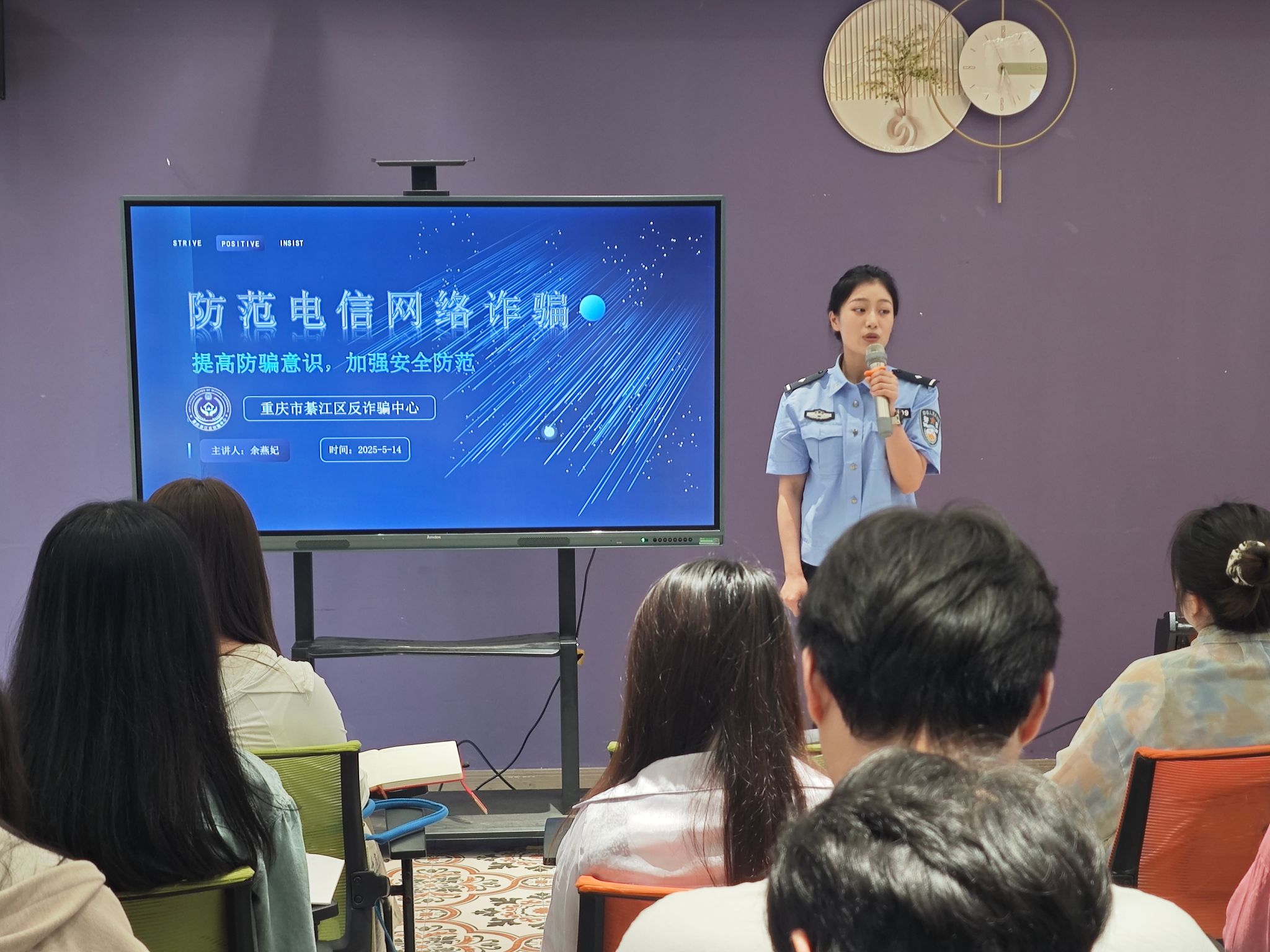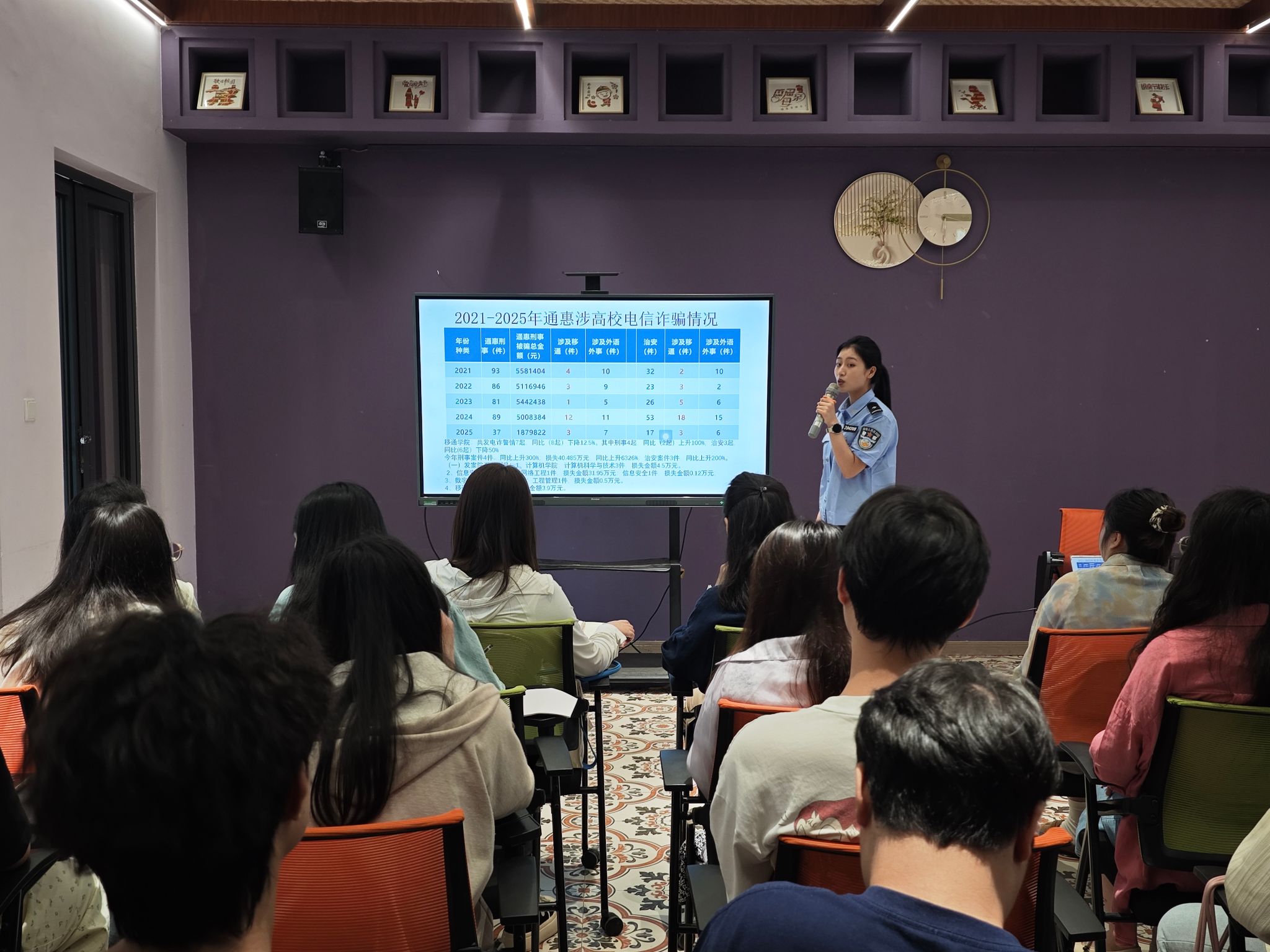 为进一步提高我院师生反诈意识,加强对网络诈骗的防范,通惠派出所联合数字经济与信息管理学院开展了一场主题为“警校携手反诈,筑牢校园安全屏障”的反诈宣传进校园活动。此次活动于2025年5月14日上午10:00在观云书院·华文书吧举行,由警官余燕妃主讲,数字经济与信息管理学院全体辅导员以及学生代表参加活动共同学习防诈反诈知识。