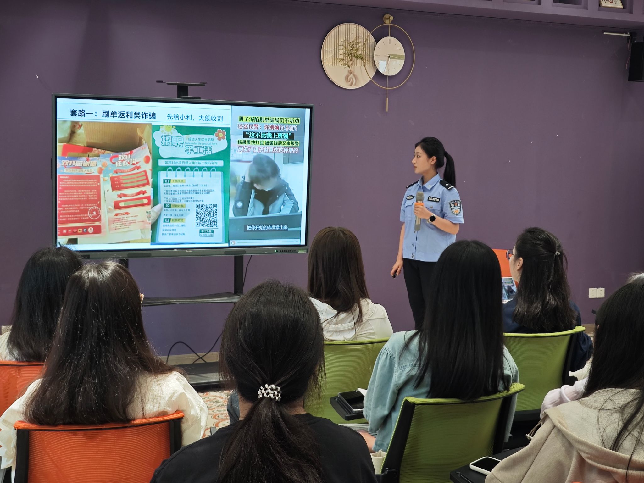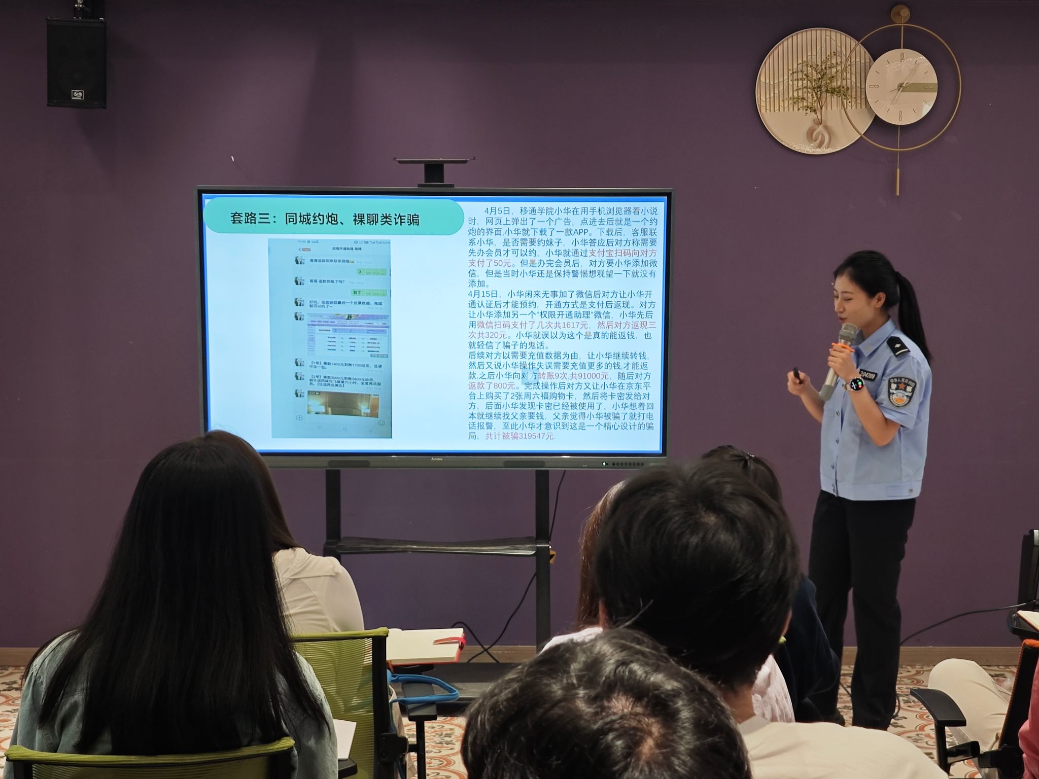 在案例分享环节,余警官结合多起发生在校园周边及校内的典型诈骗案例,详细剖析了诈骗分子的作案手法。其中包括利用学生求职心切进行的兼职刷单诈骗,诈骗分子先以小额返利获取信任,而后诱导学生投入大额资金最终卷款跑路;还有冒充客服退款诈骗,骗子通过精准掌握学生购物信息,以商品质量问题为由,引导学生点击虚假链接进行退款操作从而套取银行卡信息。此外,针对大学生热衷网络社交的特点,专家还介绍了网络交友诈骗,诈骗分子伪装成优质对象,在获取信任后以各种理由索要钱财。