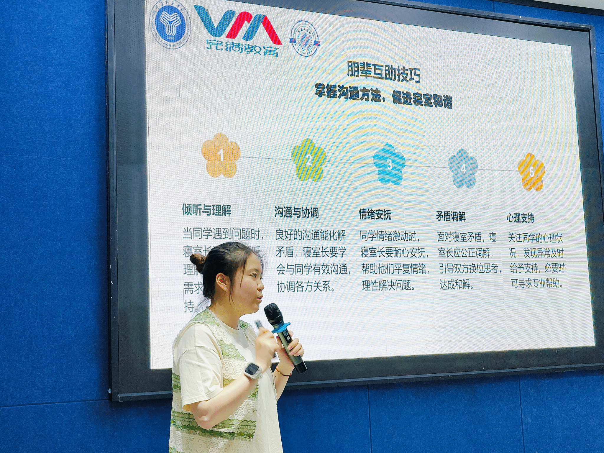 针对寝室人际关系管理,任超群老师提出“倾听-理解-沟通-调解-支持”五步工作法。他强调,当同学情绪激动时,寝室长需先耐心倾听、共情安抚,再引导双方换位思考;发现心理异常倾向时,应及时反馈给心理专项岗张雪老师等专业力量,避免问题升级。