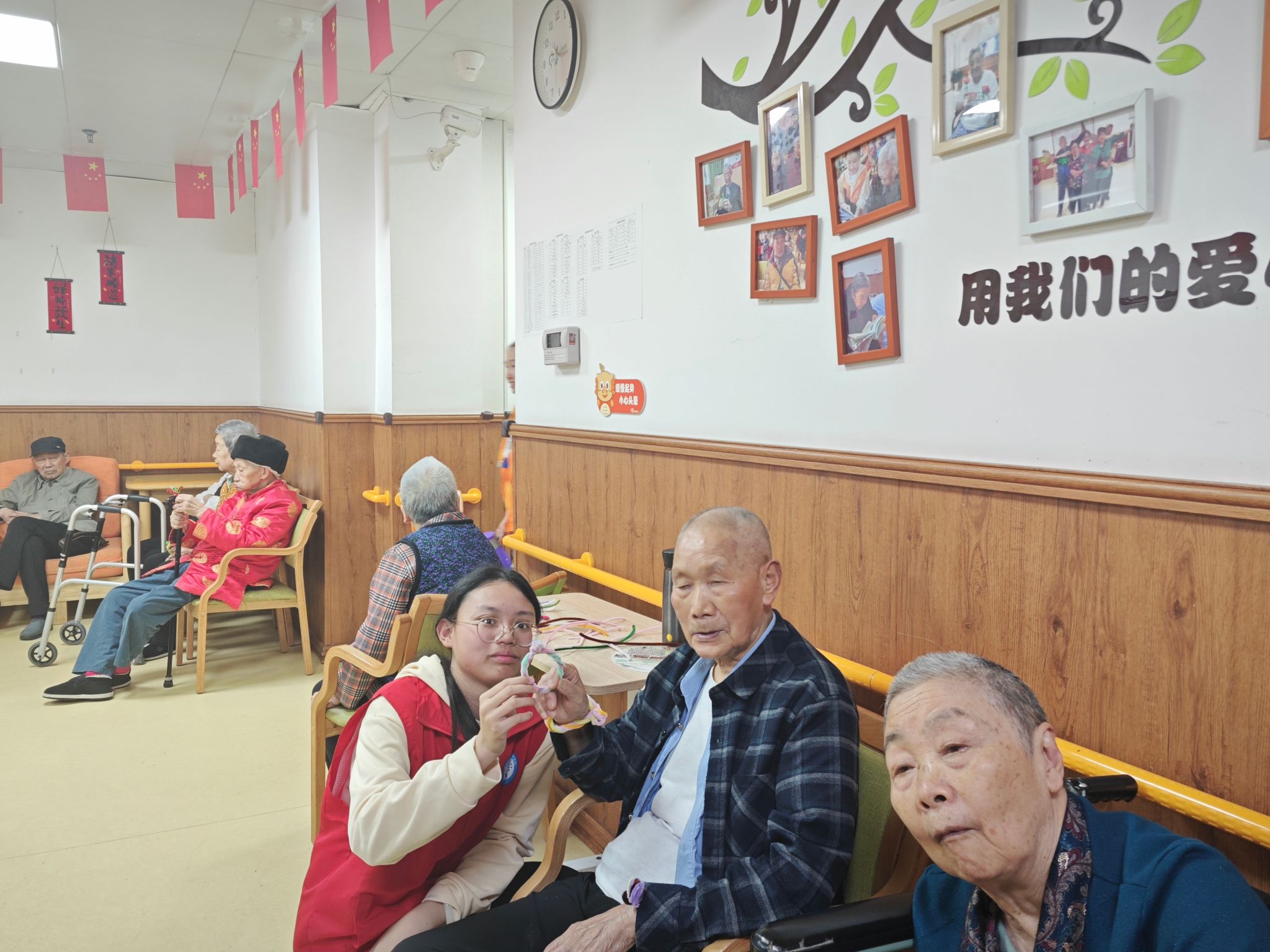 在制作五彩手环和粽子的过程中,志愿者们手把手指导,爷爷奶奶们热情高涨,全神贯注。扭扭棒的弯曲与编织间,不仅是一个个创意手环和粽子的诞生,更是大家对传统习俗新理解的展现。他们的手法或许还不熟练,但那份对传统习俗的热爱与创新精神却溢于言表。在亲手制作的过程中,他们不仅锻炼了动手能力和创造力,更在欢声笑语中加深了对端午节文化的理解与传承。随着一个个创意作品的完成,本次志愿服务活动也接近尾声。志愿者们的悉心指导,爷爷奶奶们的积极参与,共同编织了一幅充满创意与温情的端午画卷。