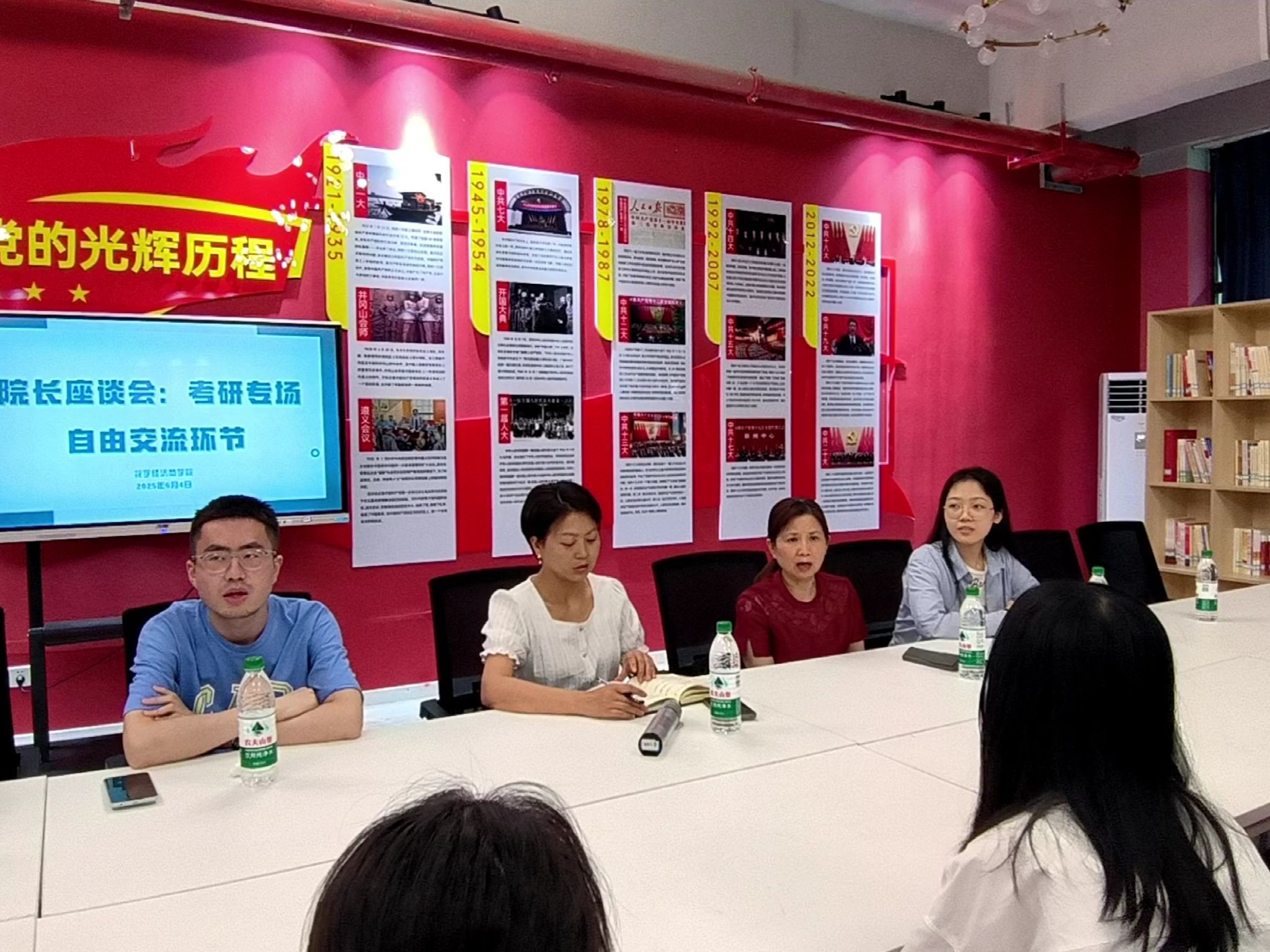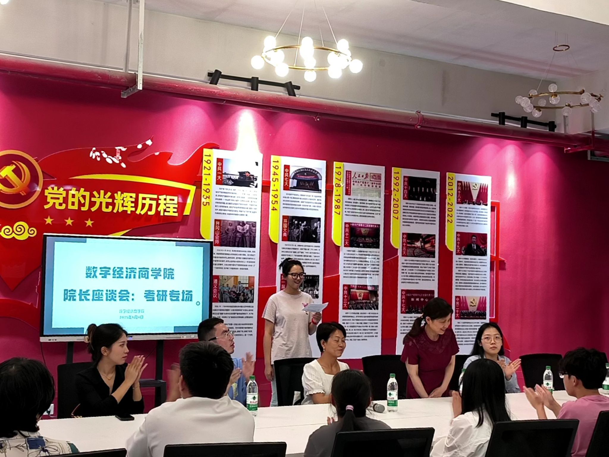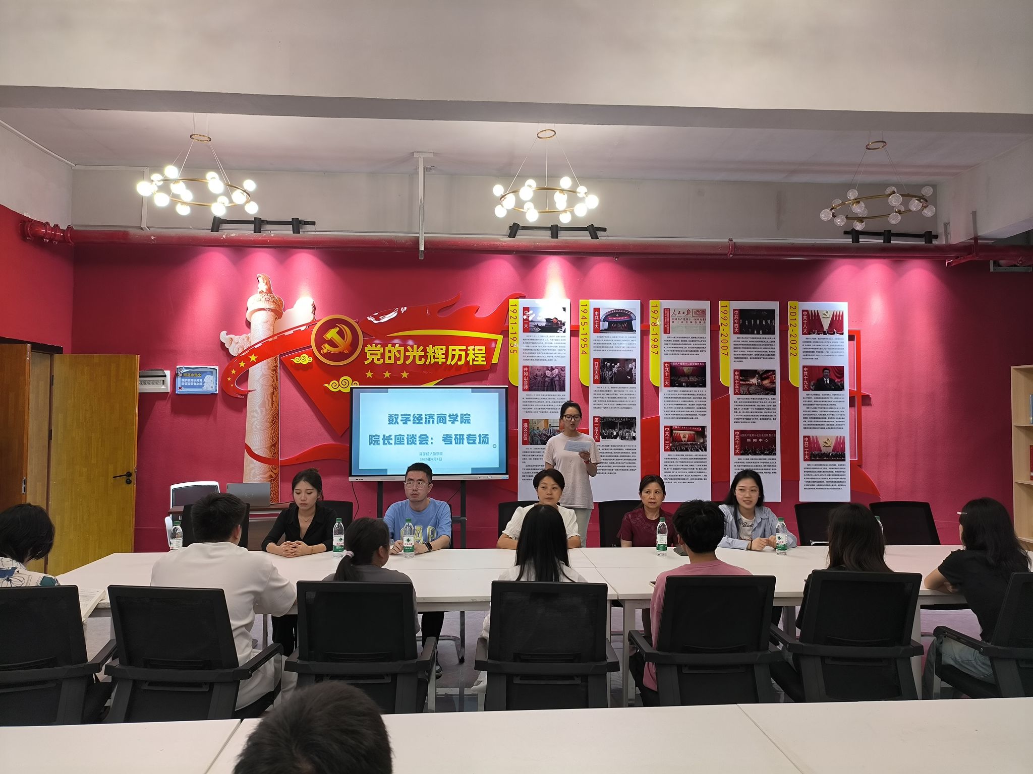 2025年6月4日13时50分,数字经济商学院于綦河二号楼党团活动室隆重举办“院长座谈会·考研专场”主题活动。本次活动以“聚焦考研趋势,赋能学子成长”为核心定位,旨在为怀揣学术理想与升学目标的莘莘学子构建高层次、专业化的交流平台。出席本次活动的嘉宾,他们分别是重庆大学经济与工商管理学院二级教授、博士、博士生导师张旭梅教授、数字经济与信息管理学院院长刘贵容教授以及我院教研室的老师们、2022 级数字经济、2024 级大数据管理与应用专升本的同学们。