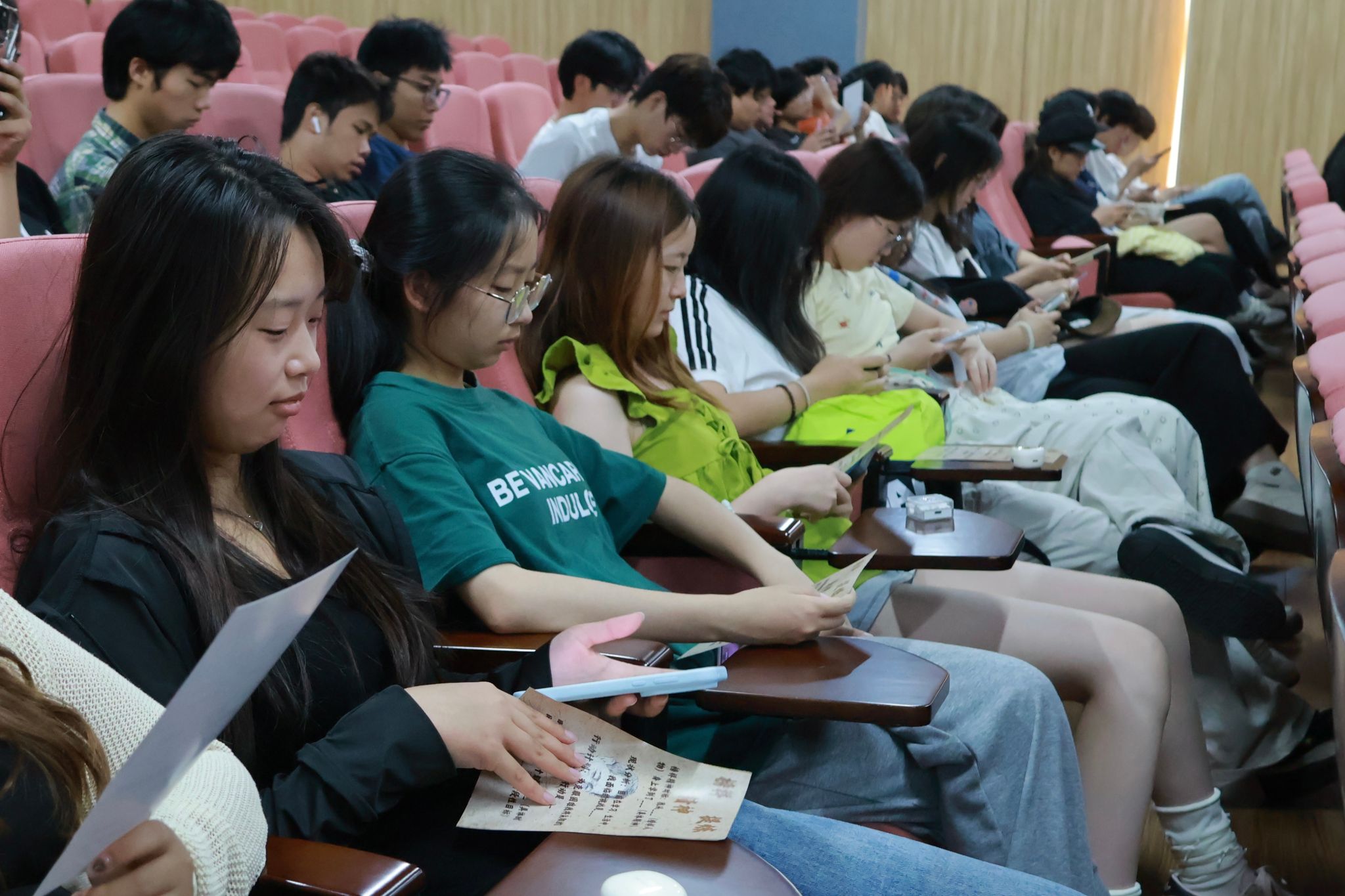同学们步入活动现场,会先领取到自己专属的侦探手册,现场布置成侦探事务所风格,灯光微暗,气氛悬疑。