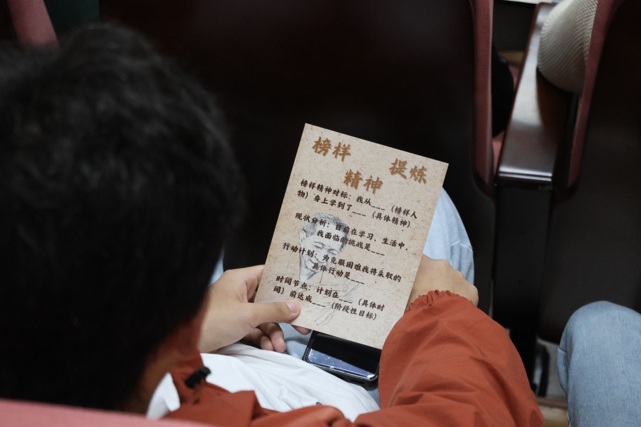 视频结束后,主持人让现场参与者拿出入场时领取的侦探手册,并郑重写下自己的“成长行动计划”,随后邀请学生分享他们的成长计划,以及榜样精神对他们成长的影响。在同学们言语中,流露出对榜样的敬仰之情和由内而外的价值认同,每一份总结都是对榜样精神的深度解读。