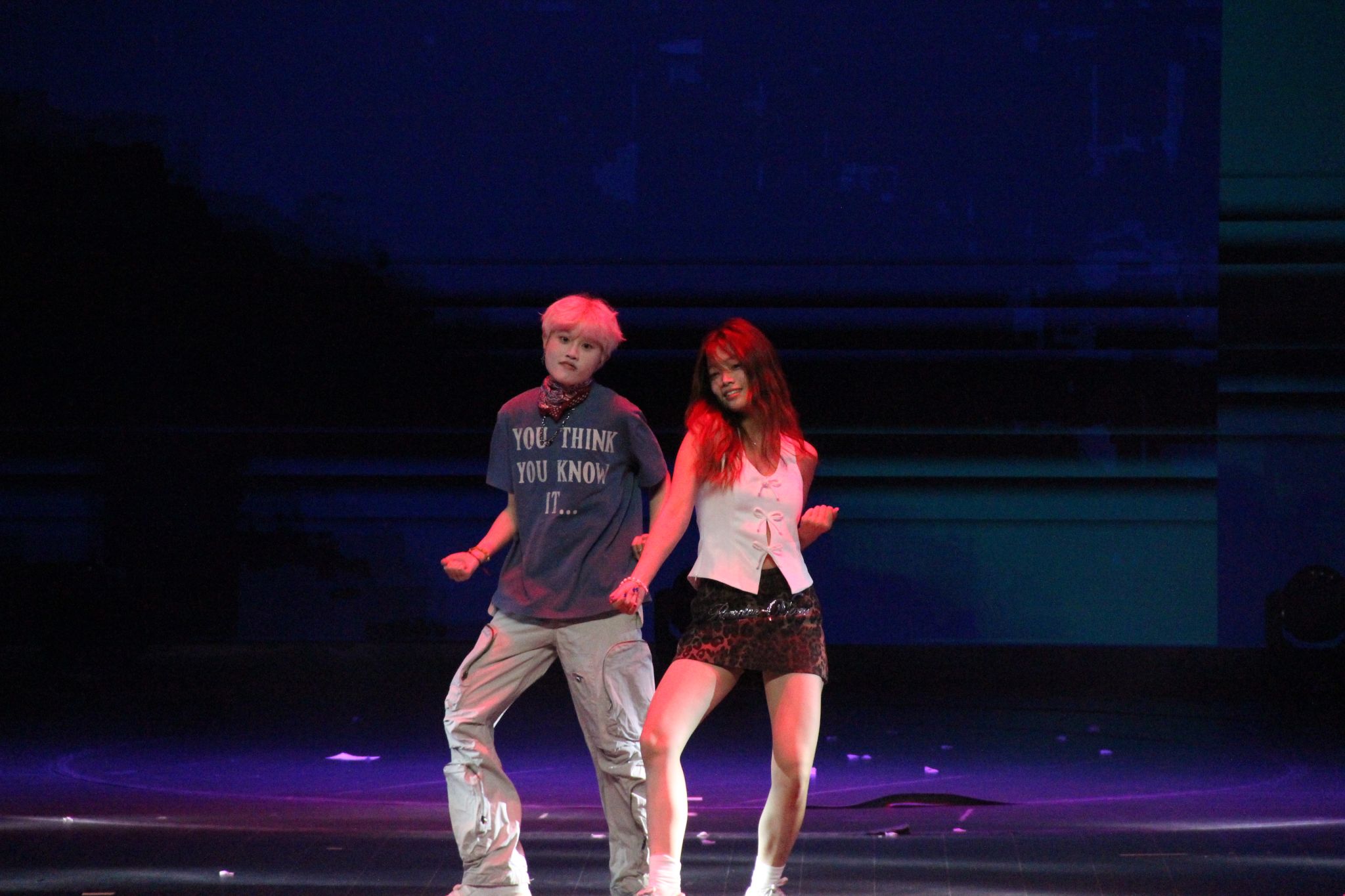 第二轮的个人赛角逐中,由“冉冉南瓜队”的两位队员带来了双人舞蹈。他们迈着自信而轻盈的步伐,缓缓走向舞台中央。随着音乐的前奏缓缓响起,两位队员瞬间进入了状态,他们的身体开始随着音乐的节奏舞动起来。他们之间的配合默契十足,仿佛心有灵犀一般。一个眼神、一个动作,彼此都能心领神会。他们的双人舞蹈,就像是一幅流动的画卷,将舞蹈的美感与情感完美地融合在一起,让在场的每一位观众都沉浸其中,如痴如醉。