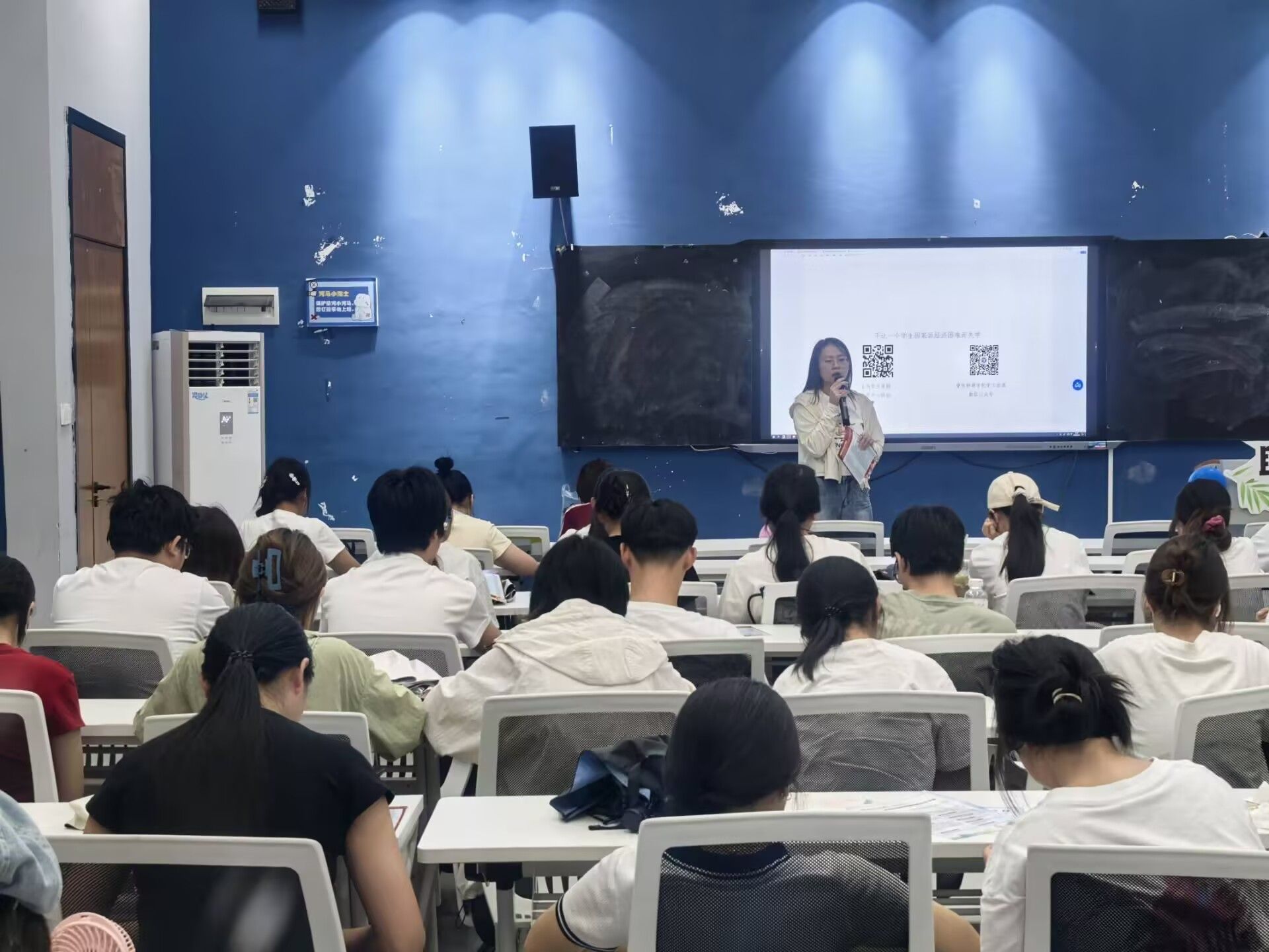 宣讲会尾声,数字经济商学院资助专项教师张倩老师上台进行了总结发言。她对周彬同学的精彩讲解表示感谢,并强调,助学贷款政策对于促进教育公平、帮助家庭经济困难学生完成学业的重要意义,叮嘱同学们在暑假期间不要忘记办理相关贷款手续,确保新学期能够顺利入学。