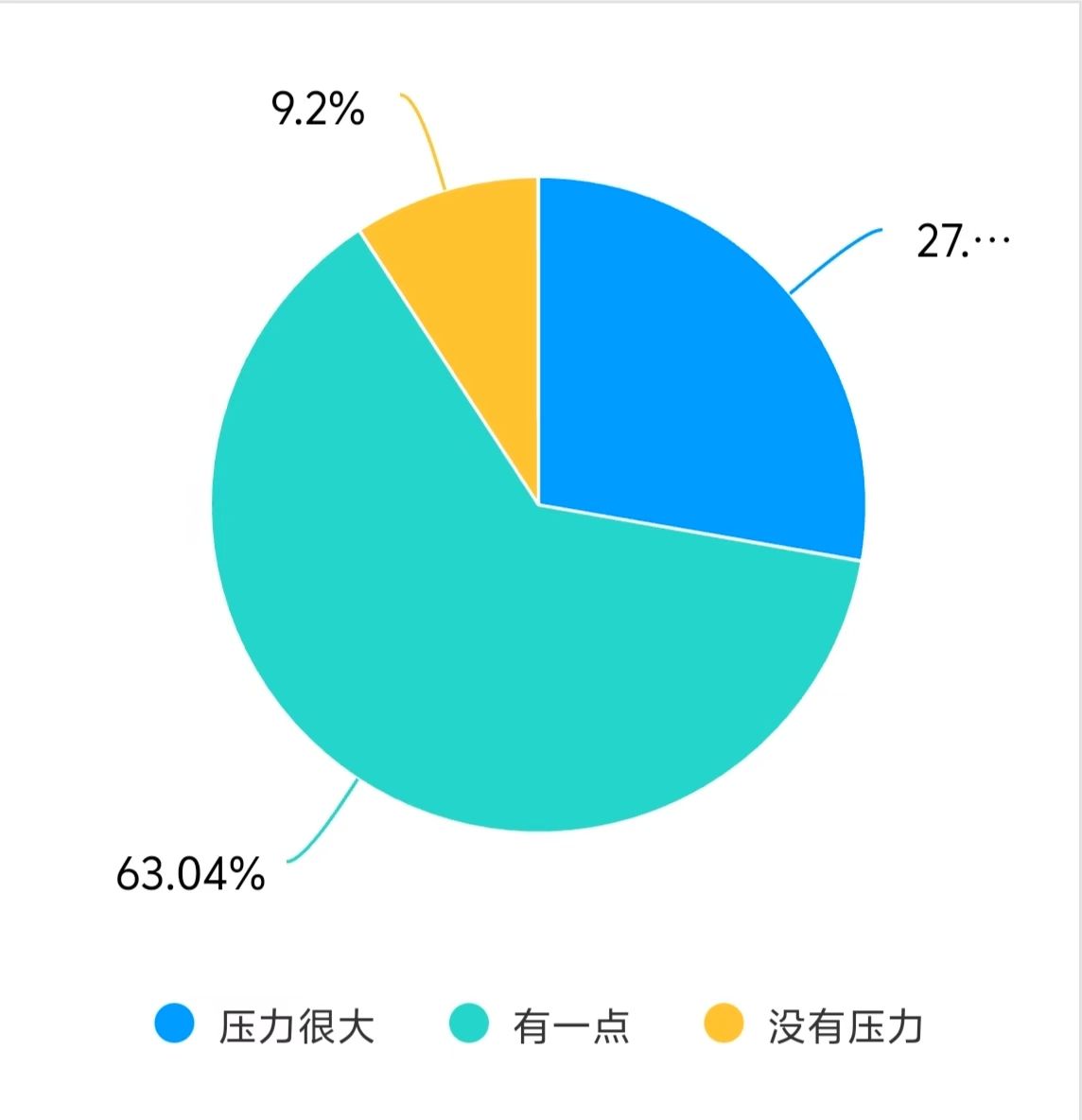 63.04%学生感受到"一定压力",27.76%报告"压力很大"压力源前三位依次为:成绩负面后果(43.02%)、自我期望落差(32.08%)、同伴竞争(12.63%)。
