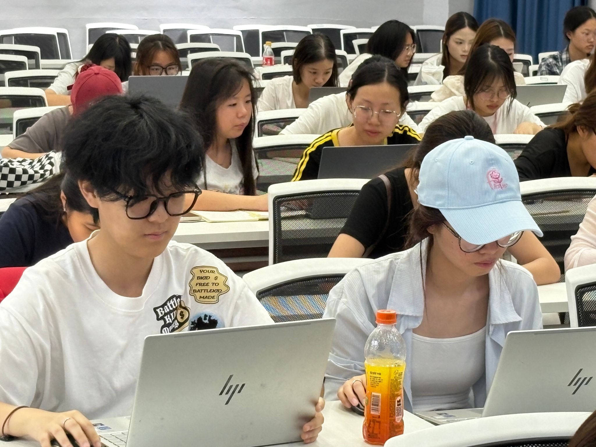 2025年6月9日至17日,綦河书院智慧教室灯火通明。2024级供应链管理专业1班与2班全体同学齐聚于此,迅速从轻声交流的课间状态切换至专注模式。柔和充沛的灯光下,学子们有序落座,动作利落地铺开专业课本、笔记与习题集。室内秩序井然,落针可闻,唯有键盘的轻快敲击、书页翻动的沙沙细响此起彼伏,偶尔夹杂着极低沉的思考呢喃。这些声音交织融合,共同谱写了一曲静谧而充满活力的期末自习协奏曲。沉静而浓厚的学习氛围如同无形的磁场,牢牢吸引着每一位求知者,瞬间将喧嚣隔绝在外。