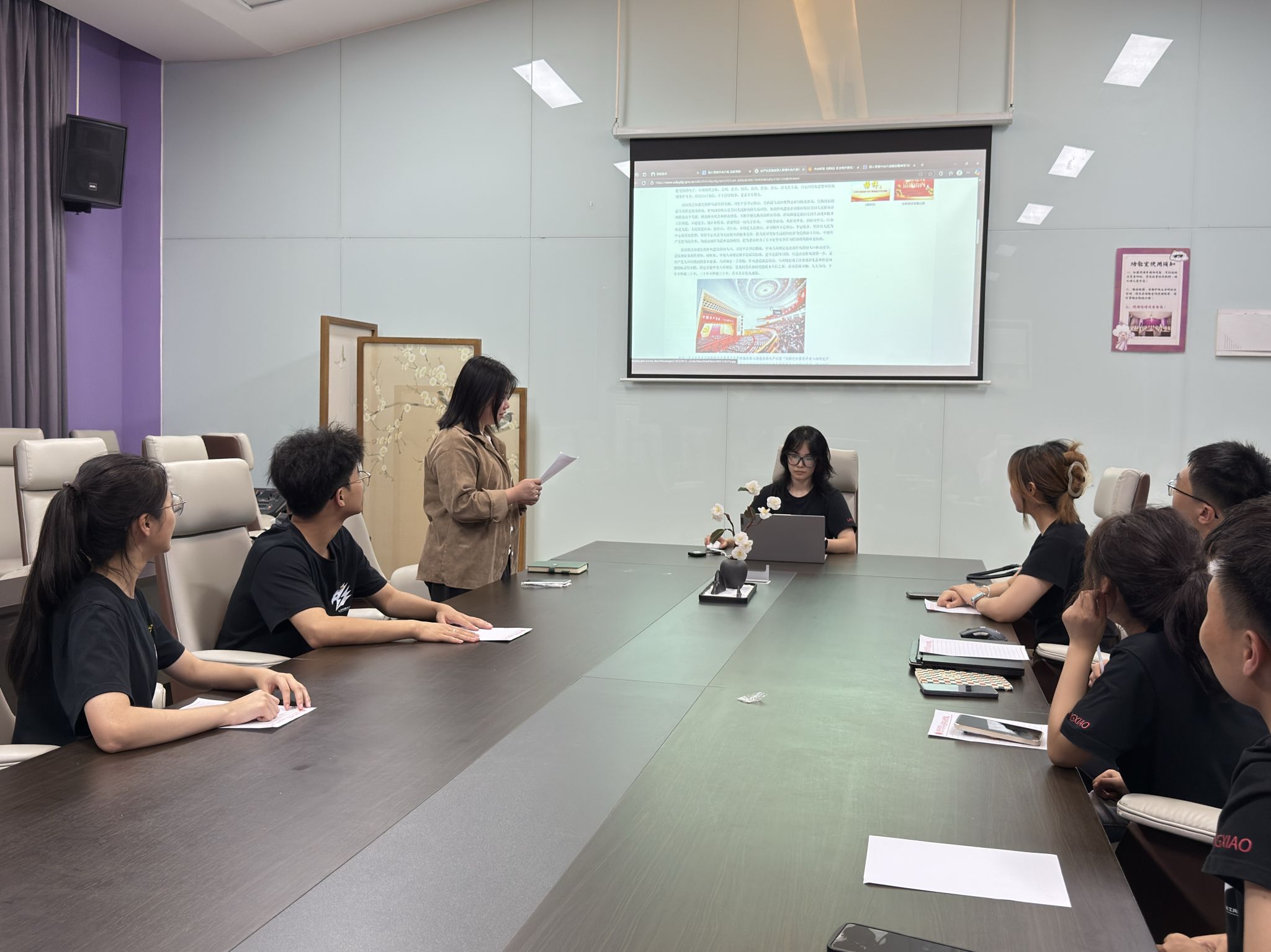 第一党小组的专题学习会上,组长胡鑫欣以“系好廉洁自律第一粒扣子”为喻,点燃了党员们的学习热情。“学业诚信、生活节俭、服务务实、纪律严明——中央八项规定精神就藏在这些点滴细节中。”她的话语如清泉,涤荡着每位党员的心。