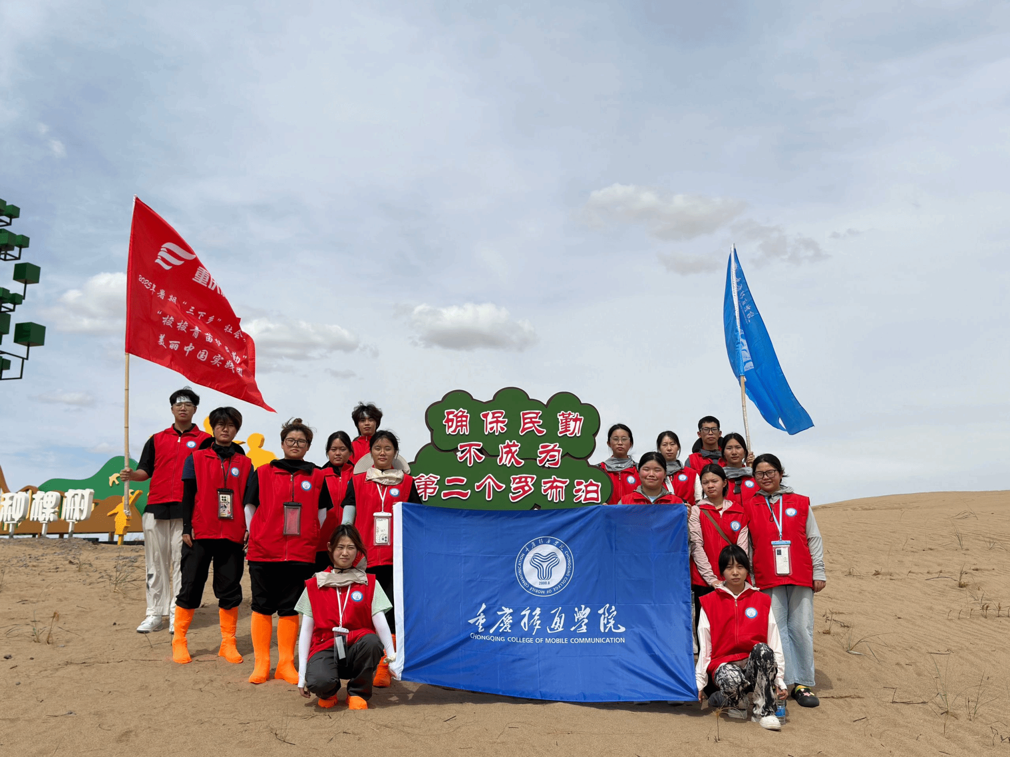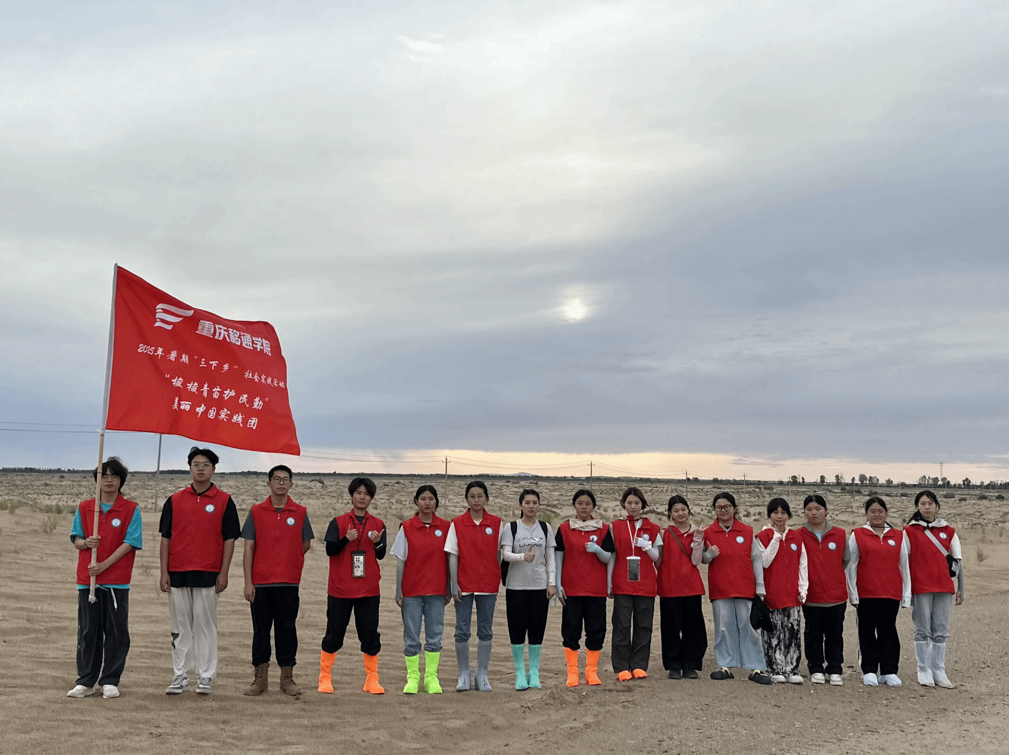 植此青绿,共筑山河。在建设美丽中国的时代号角声中,每一抹新绿都是人与自然和谐共生的生动注脚。重庆移通学院数字经济商学院“梭梭青苗护民勤”美丽中国实践团的16名青年学子,以青春之名响应号召,化身为绿色使者与生态先锋,于7月4日毅然踏上西行列车,奔赴治沙一线。在未来七天里,以青春为笔,在广袤无垠的戈壁滩上勾勒生态蓝图;以汗水为墨,在风沙肆虐的荒原上挥毫泼墨。不仅如此,他们还将践行低碳出行、垃圾分类等环保理念,向当地居民宣传绿色能源使用等环保知识,积极推广环保治沙新技术。用实际行动书写新时代的“青春治沙记”,为守护地球生态家园、推动环保事业发展、谱写人与自然和谐共生的中国式现代化新篇章贡献蓬勃的青春力量。