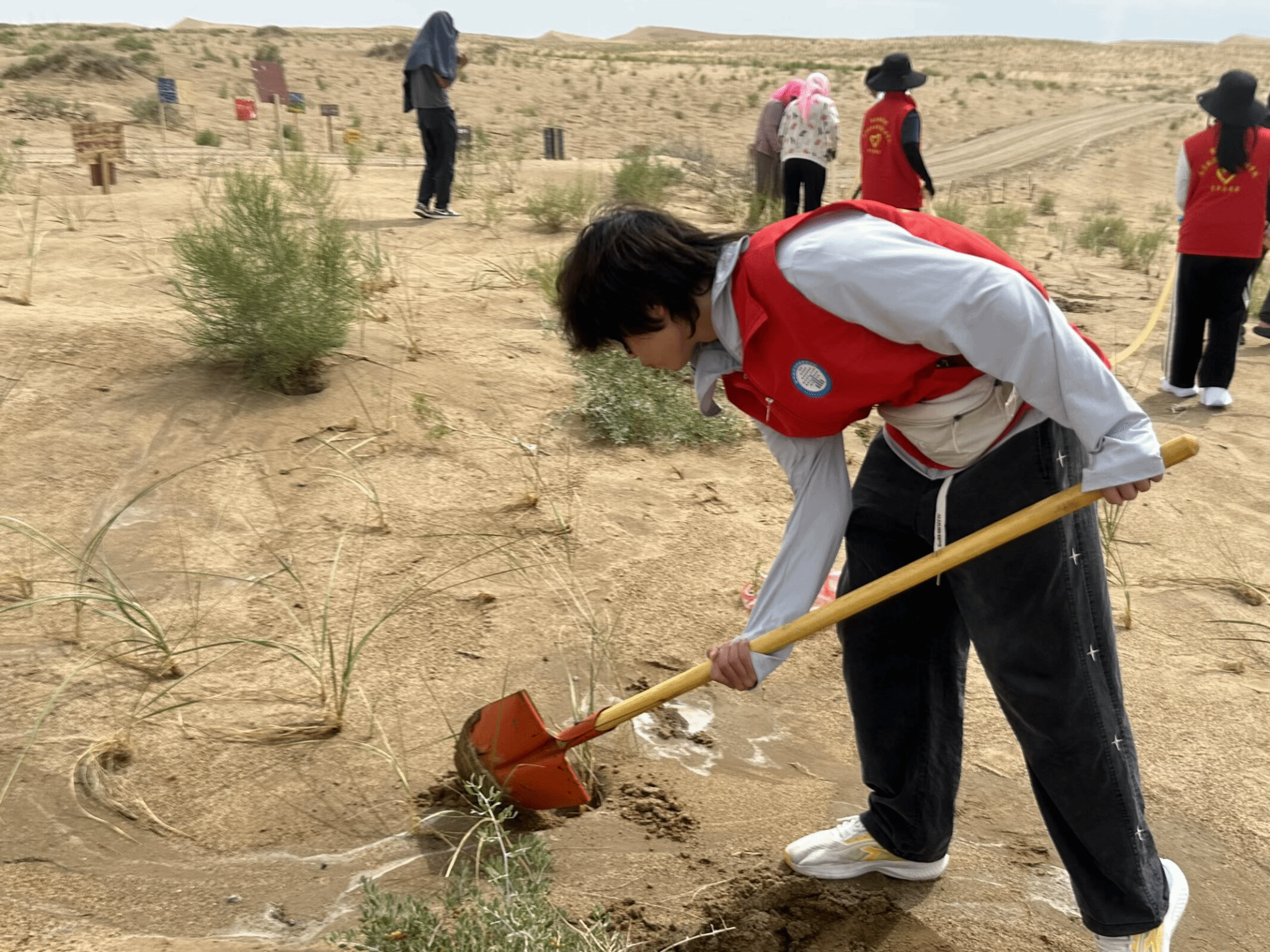 从江河奔涌到荒漠孤烟,从湿地氤氲到青山滴翠,习近平总书记为美丽中国建设擘画的蓝图,始终指引着前行方向。此次实践中,绿色发展的理念如种子般深植青年心间,治沙精神化作行动的号角,让尊重自然、守护生态的意识在青春血脉中奔涌。未来6天,“梭梭青苗护民勤”美丽中国实践团将以青春作笔、汗水为墨,在构筑西北生态屏障的征程中,书写属于新时代青年的绿色答卷,让治沙精神在守护山河的实践中代代相传。