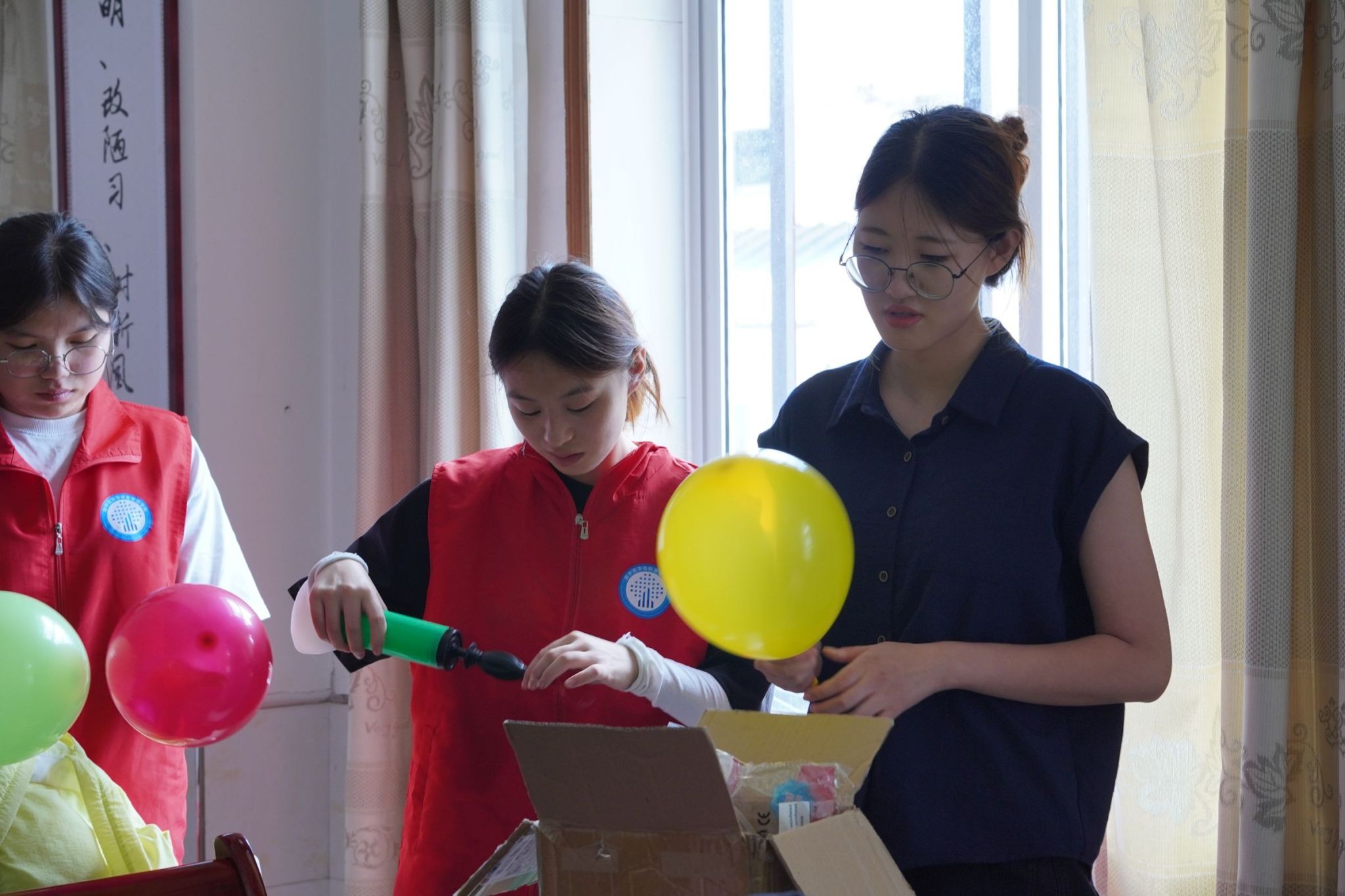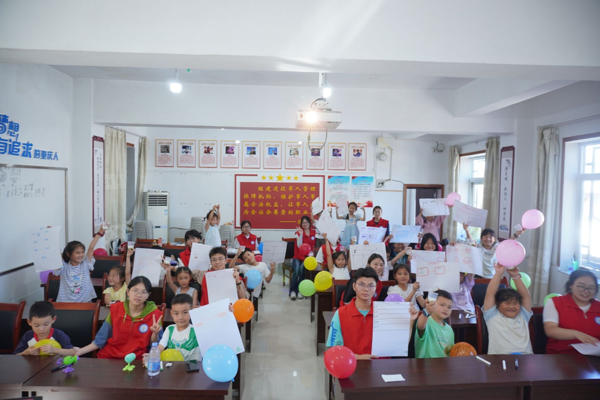 活动前期,“小桔灯”成员们深入横山社区的大街小巷,挨家挨户走访。他们以真诚的态度与社区居民沟通交流,耐心介绍此次“三下乡”实践活动的内容与意义,寻找当地儿童并诚挚邀请他们参与。在与孩子们和家长们的交流过程中,成员们详细记录孩子们的兴趣爱好和学习情况,最终与众多儿童约定在回新社区服务中心参加为期六天的系列活动。7月2日上午,经过多方努力,成功确定了参会儿童名单。“小桔灯”志愿者成员们热情瞬间被点燃,大家迅速分工协作,积极布置活动会场。他们精心摆放桌椅,悬挂五彩缤纷的气球,准备丰富多样的活动道具,每一个细节都饱含着对孩子们到来的期待。