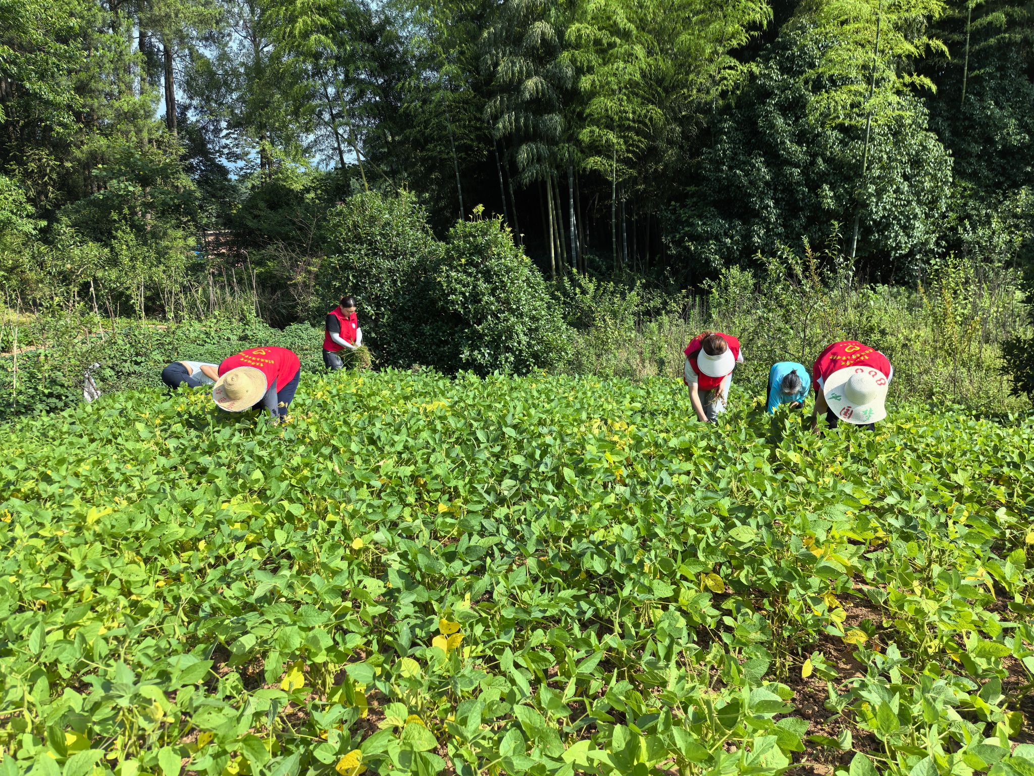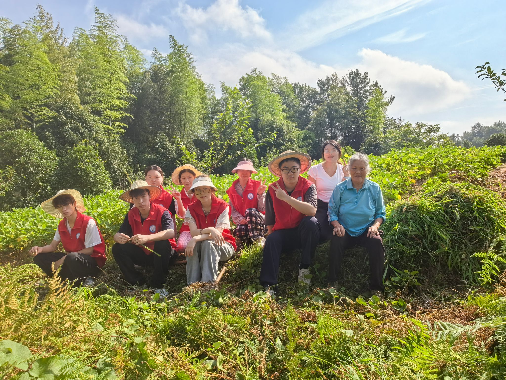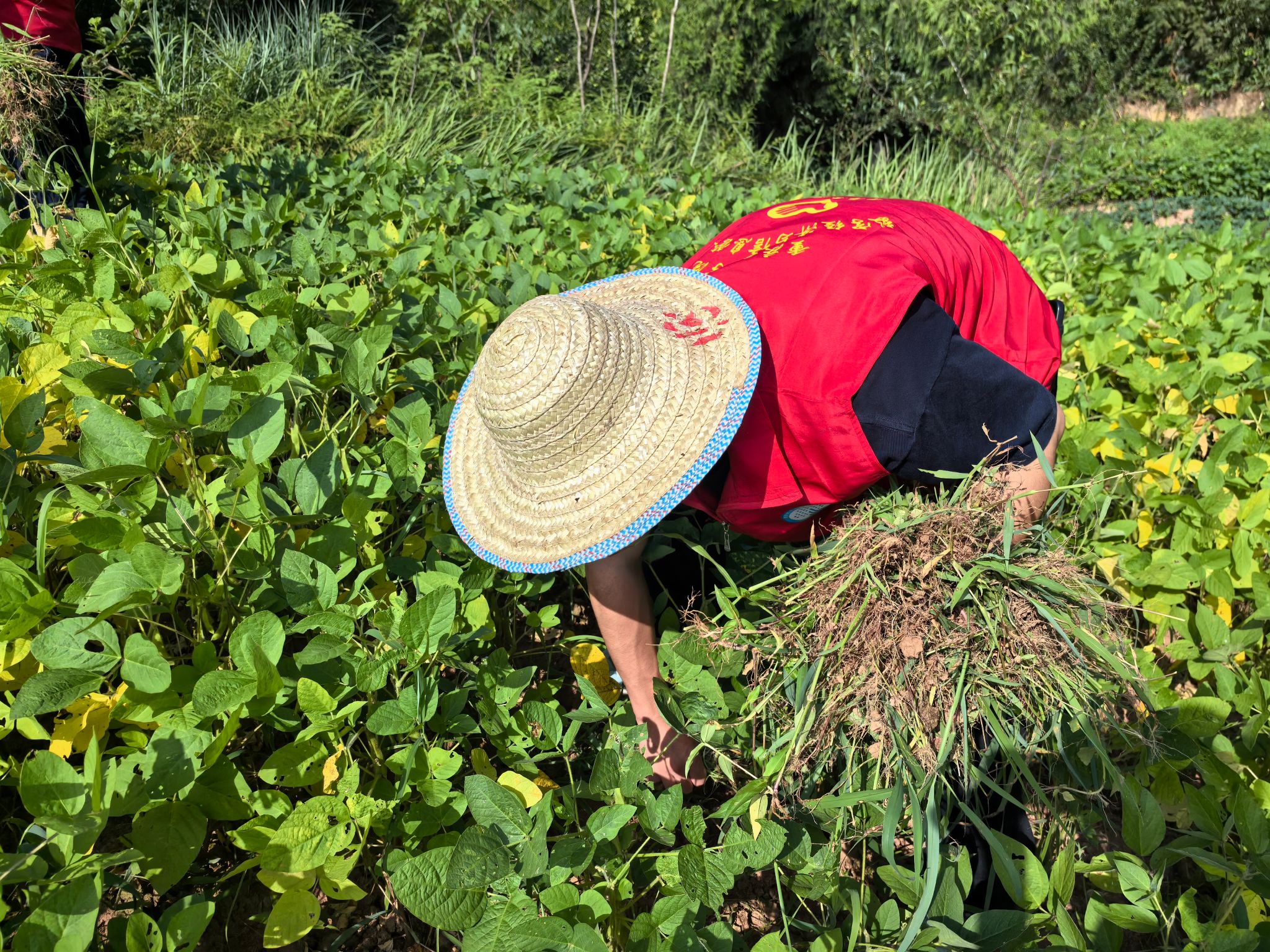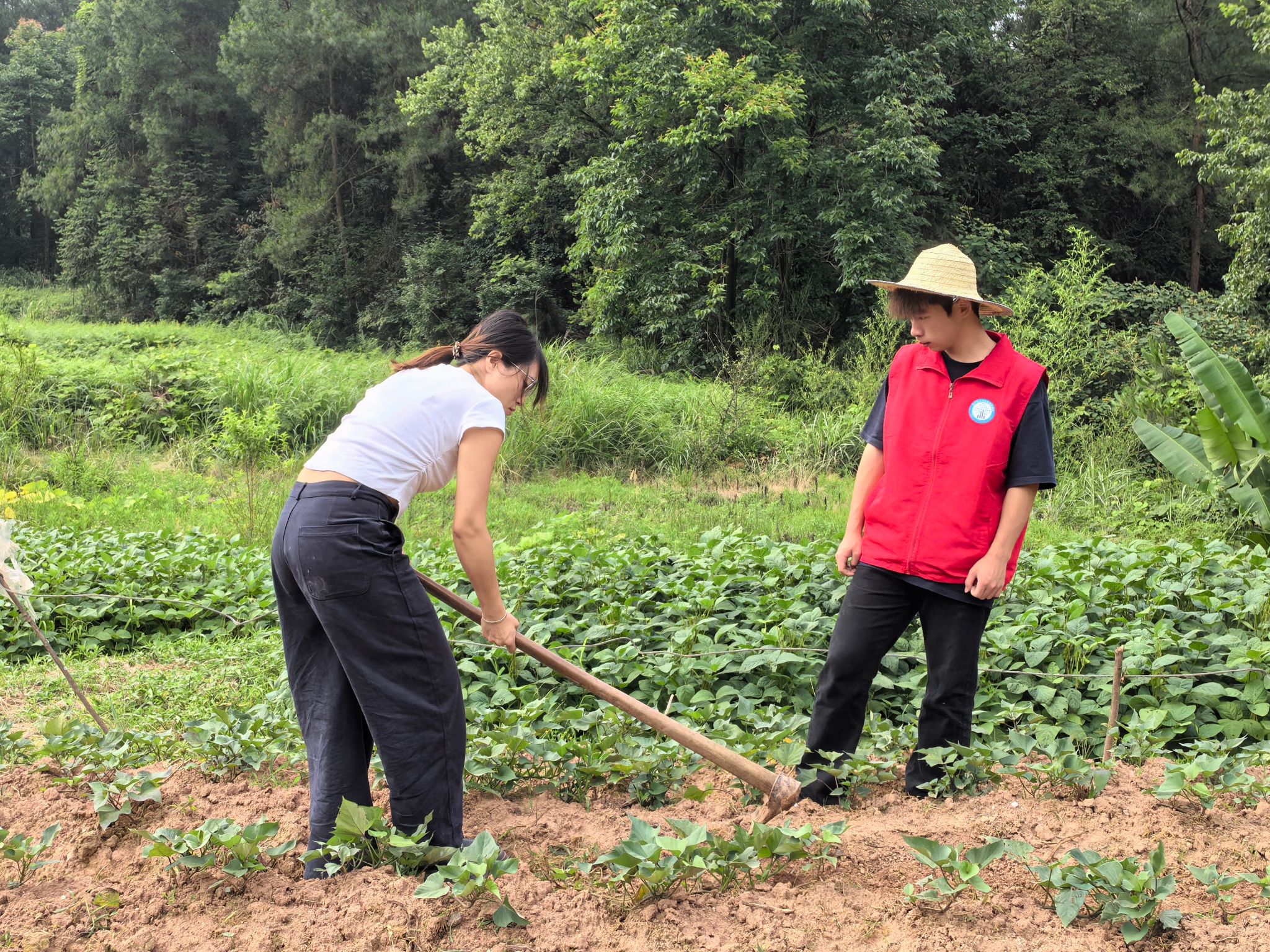 趁着日头未盛,志愿者们马不停蹄地转战红薯地与黄豆地。经过稻田的历练,这次志愿者们个个摩拳擦掌,跃跃欲试。“这个锄头要这样子用……”农户刘大娘操着浓重的乡音,一边比画一边耐心讲解。阳光透过她粗糙的手指,在农具上投下斑驳的光影。“其实没啥子技巧,就是熟能生巧……”看着志愿者们专注的神情,刘大娘不好意思地搓了搓手。接过锄头的瞬间,沉甸甸的分量让志愿者们心头一震。带队老师彭仙躬身力行的同时,也在提醒大家注意安全。锄起锄落,泥土的气息在空气中蔓延,刘大娘不断在一旁纠正志愿者的动作。当最后一片杂草被连根拔起,志愿者们直起酸痛的腰,忍不住感叹“没想到锄头这么沉,挥几下胳膊就酸了!”“今天是真的能够懂课本那一句‘粒粒皆辛苦’了。”看着志愿者们沾满泥土的双手,彭仙老师欣慰地表示,这就是实践的意义——让知识走出方寸课本,让青春扎根广袤大地,在劳动中,读懂生活这本最厚重的书。