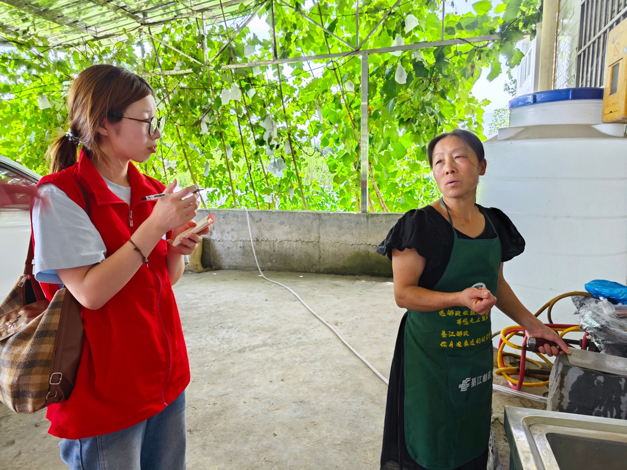 中午稍作休息后,志愿者们兵分多路,穿行在村社院落之间,深入农户家中开展调研,与农户促膝长谈。“您家现在还有几口人种地?”“这几年主要种植、喂养些什么?”“您家最近在忙哪些农活?需要哪些帮助?”……志愿者们的问题由浅入深,既关注农业生产实际,也饱含对农民的关心。调研过程中,志愿者们实时上传相关内容。数据显示,目前高庙村务农人员大多为中老年人,年轻人多外出打工,劳动力短缺问题突出。而针对相关问题,志愿者们积极出谋划策——推广小型智能化农机具,降低劳动强度,或者给予返乡务农的青年适当补贴,激发其返乡热情等。当这份凝结着实践智慧与走访心血的调研报告递交给村委时,面对里面详实的数据支撑、透彻的问题分析和切实可行的解决方案,村委干部们深表对志愿者的感谢,动情地指出乡村振兴从来不是抽象的口号,是弯下腰触摸的土地,用脚步丈量出的实干篇章。针对报告中的解决方案,村委干部表示会结合本村实际情况去落实。