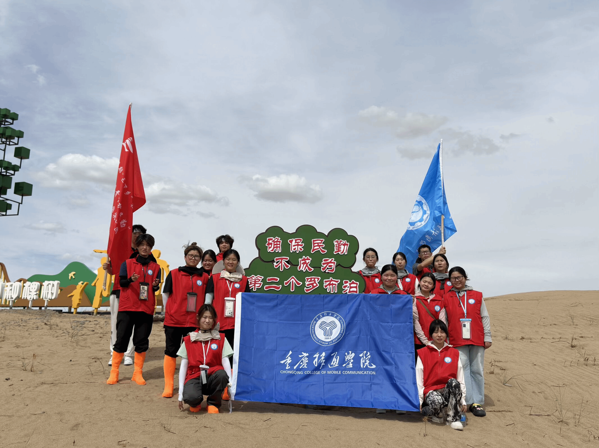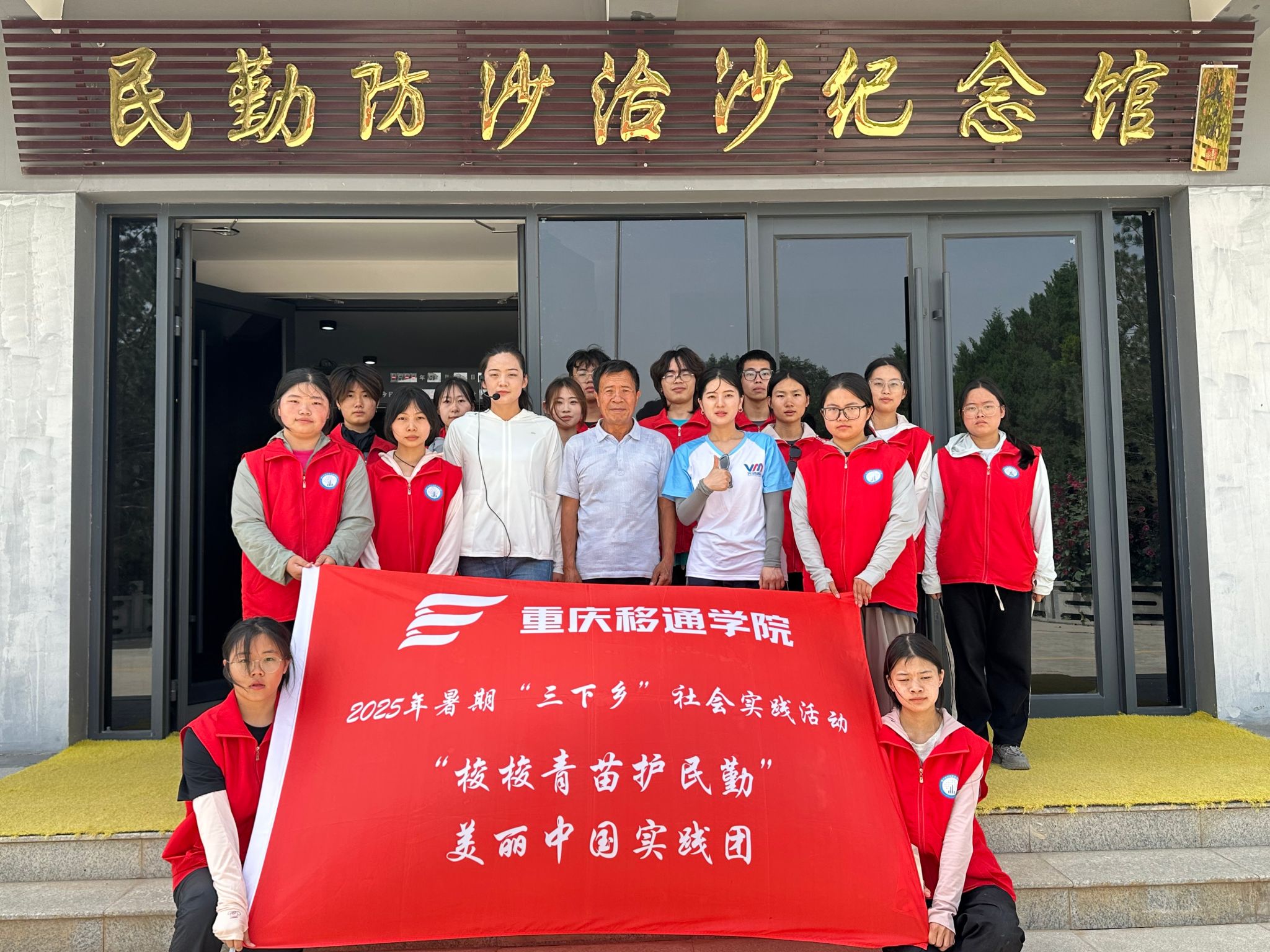 7月5日至7月11日,重庆移通学院数字经济商学院“梭梭青苗护民勤”美丽中国实践团奔赴甘肃省民勤县治沙最前线。在这整整7天的基地实践时光里,队员们全身心投入,亲手参与梭梭苗的养护工作,与基层治沙人展开深度对话,倾听他们的治沙故事。7月11日告别实践基地后,团队又马不停蹄地前往民勤防沙治沙纪念馆等地参观学习。此次行程,意在让队员们零距离感受治沙工作的艰辛不易,深度探寻民勤人数十年来坚守荒漠、矢志不渝再造绿洲的精神内核,以青春独有的视角,记录并传承这份沉甸甸的生态守护使命。