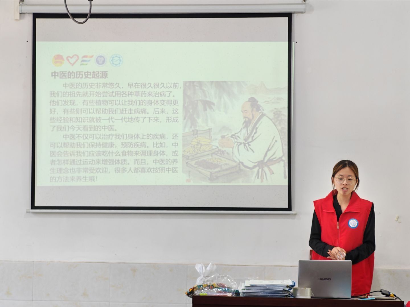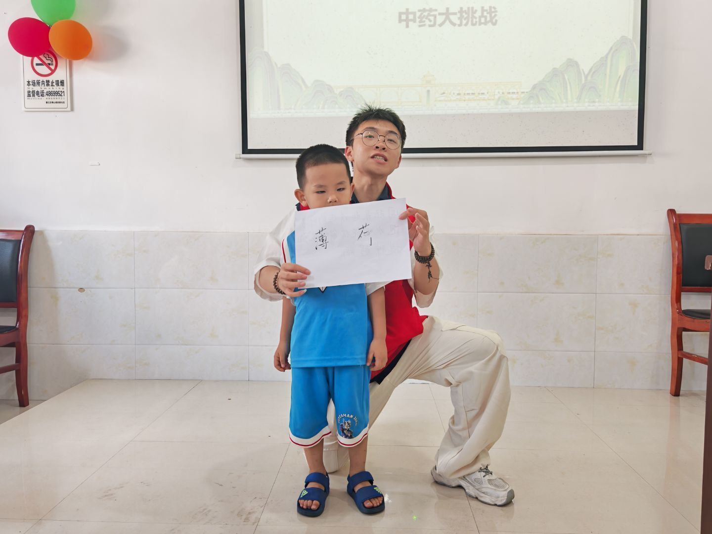 活动在欢声笑语中拉开了帷幕。志愿者化身“科普老师”,以生动活泼的语言为孩子们讲解中医基础知识。从“望闻问切”四诊法到常见中药材的辨识,结合趣味故事和生活实例,将晦涩的中医知识转化为通俗易懂的内容。孩子们积极举手提问,课堂氛围轻松活跃,在问答互动中初步建立起对中医文化的认知。在中药辨识环节,志愿者通过发放小卡片给每个小朋友,小朋友在志愿者们的引导下认识自己手中的药材,并且一一上台展示。课堂中孩子们积极讨论中药材,互相识别手中的中药材,课堂气氛瞬间达到高潮。