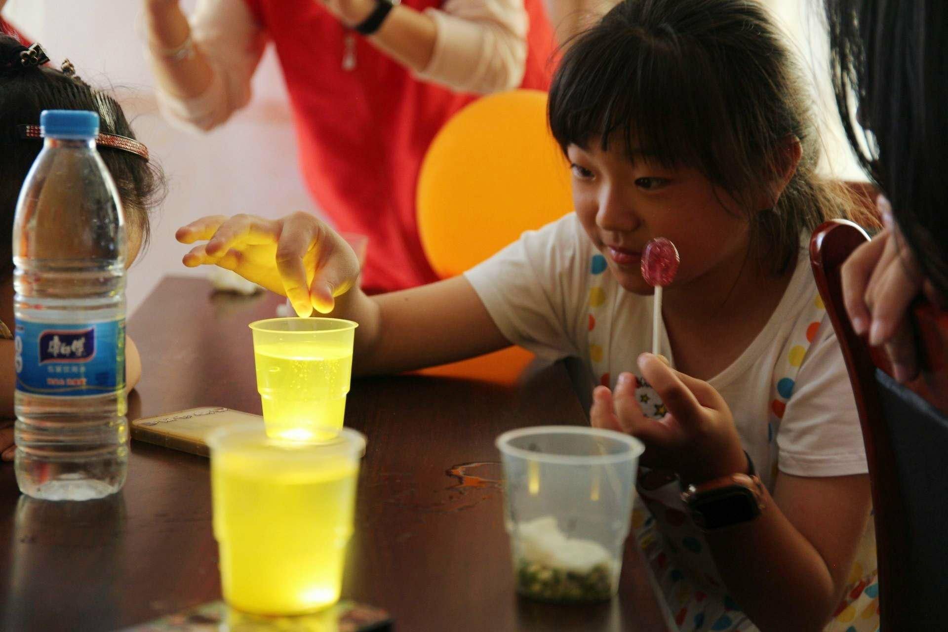 次日上午的科学课上,静电的奥秘让孩子们着迷。志愿者指着冬日毛衣上的火花、家里的除尘器,把"电子转移"讲成了"小粒子的搬家游戏"。当"烟雾泡泡"裹着白气飘向空中,当"荧光流星"在黑暗中划出绚丽弧线,孩子们的惊叹声差点掀翻屋顶。一个扎着羊角辫的小姑娘举着自己做的泡泡器,追着志愿者问:"为什么泡泡里会有烟呀?"这份旺盛的好奇心,正是科学最美的模样。