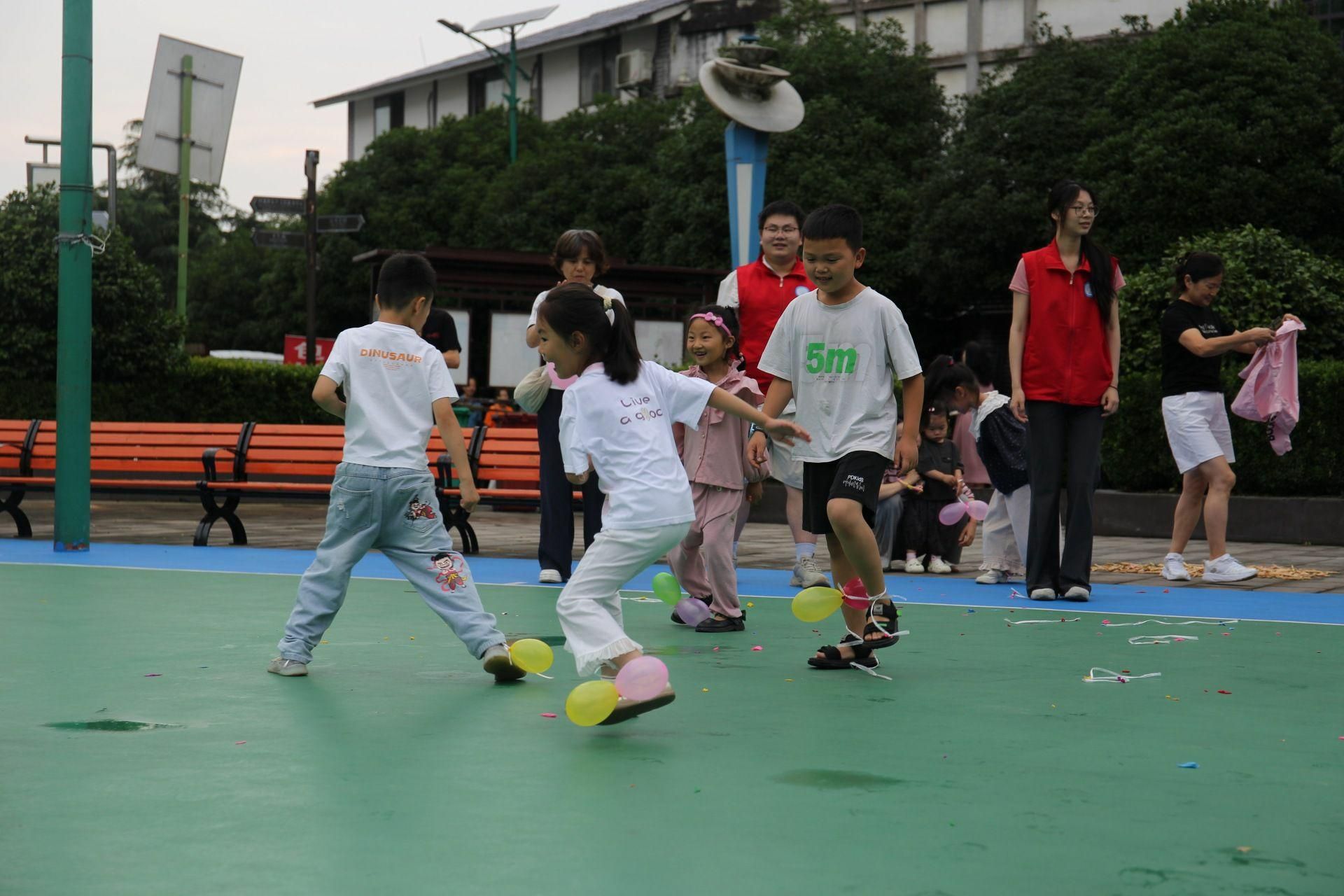 7月7日上午的趣味运动会上,社区广场成了欢乐的海洋。踩气球的"砰砰"声里,孩子们灵活躲闪;乒乓球接力时,有人掉了球,立刻有伙伴捡起来说"加油";水杯吹球比赛中,成功的欢呼此起彼伏。志愿者们在一旁呐喊助威,看着孩子们在运动中释放活力,脸上的笑容格外灿烂。这场运动会不仅是体力的比拼,更是六天友谊的升温,每一个瞬间都充满了阳光与朝气。
