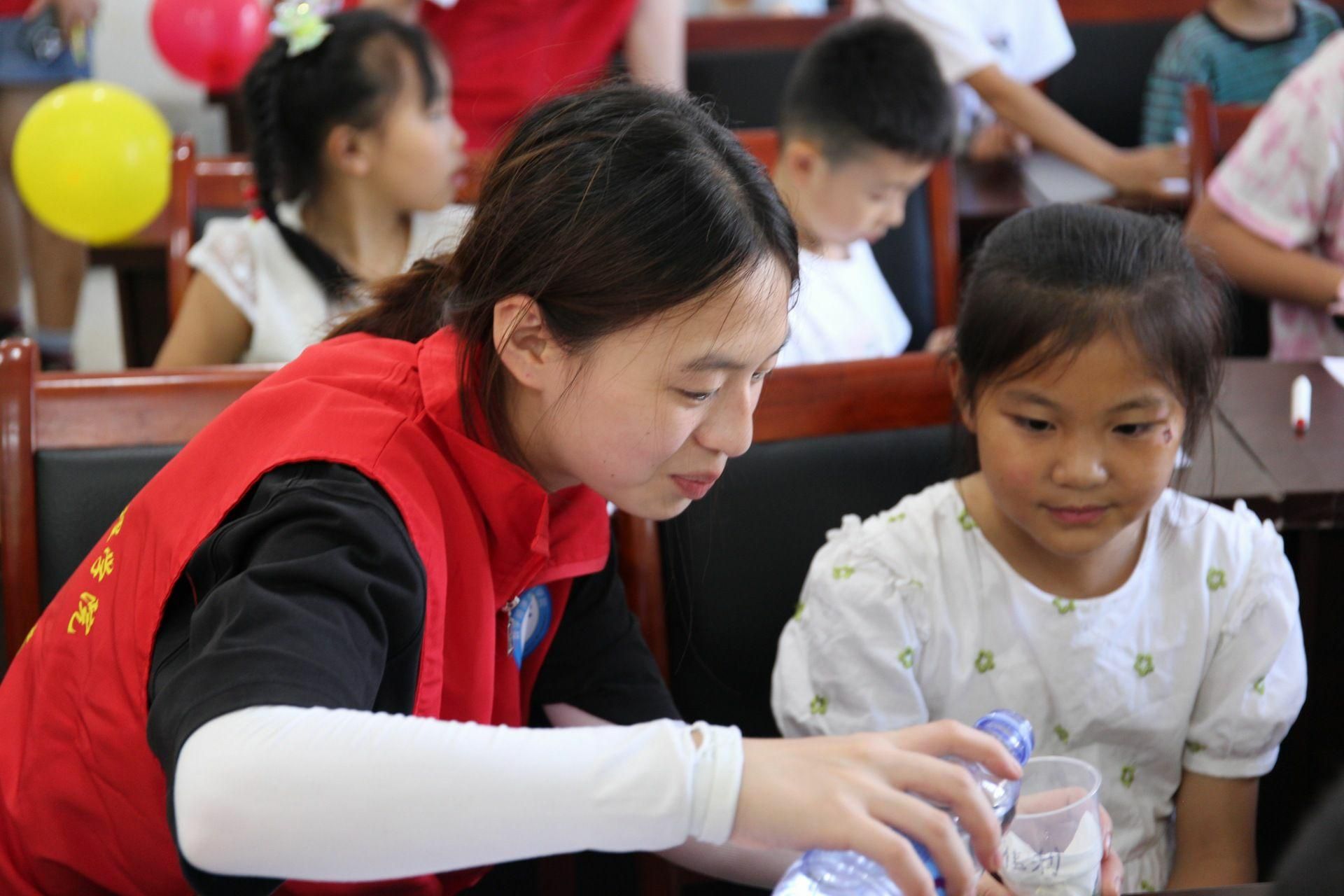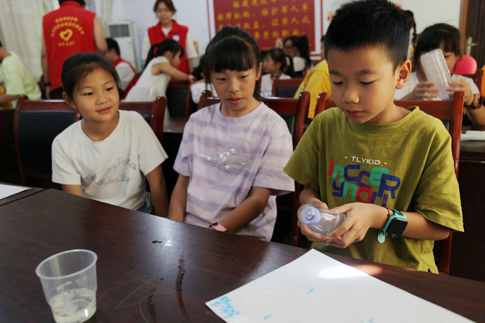 7月2日下午,"小桔灯"教育关爱服务团的志愿者们带着提前走访40余户家庭收集的需求清单,在社区活动中心拉开了"破冰之旅"的序幕。五彩气球装点的活动室里,"抓鸭子"游戏的节奏声此起彼伏,孩子们手拉手围成圈,随着"抓几只,抓一只,嘎嘎嘎"的口令蹦跳欢笑,陌生感在笑声中渐渐消融;猜颜色游戏里,大家互相鼓劲、齐心抢答,团队的默契悄然滋生。随后的"种子发芽日记"课堂上,志愿者手把手教孩子们用塑料瓶制作水培容器,绿豆被小心翼翼地放入水中,孩子们睁着好奇的眼睛问:"它什么时候会发芽呀?"这份对生命的期待,成了志愿者与孩子们心照不宣的约定。