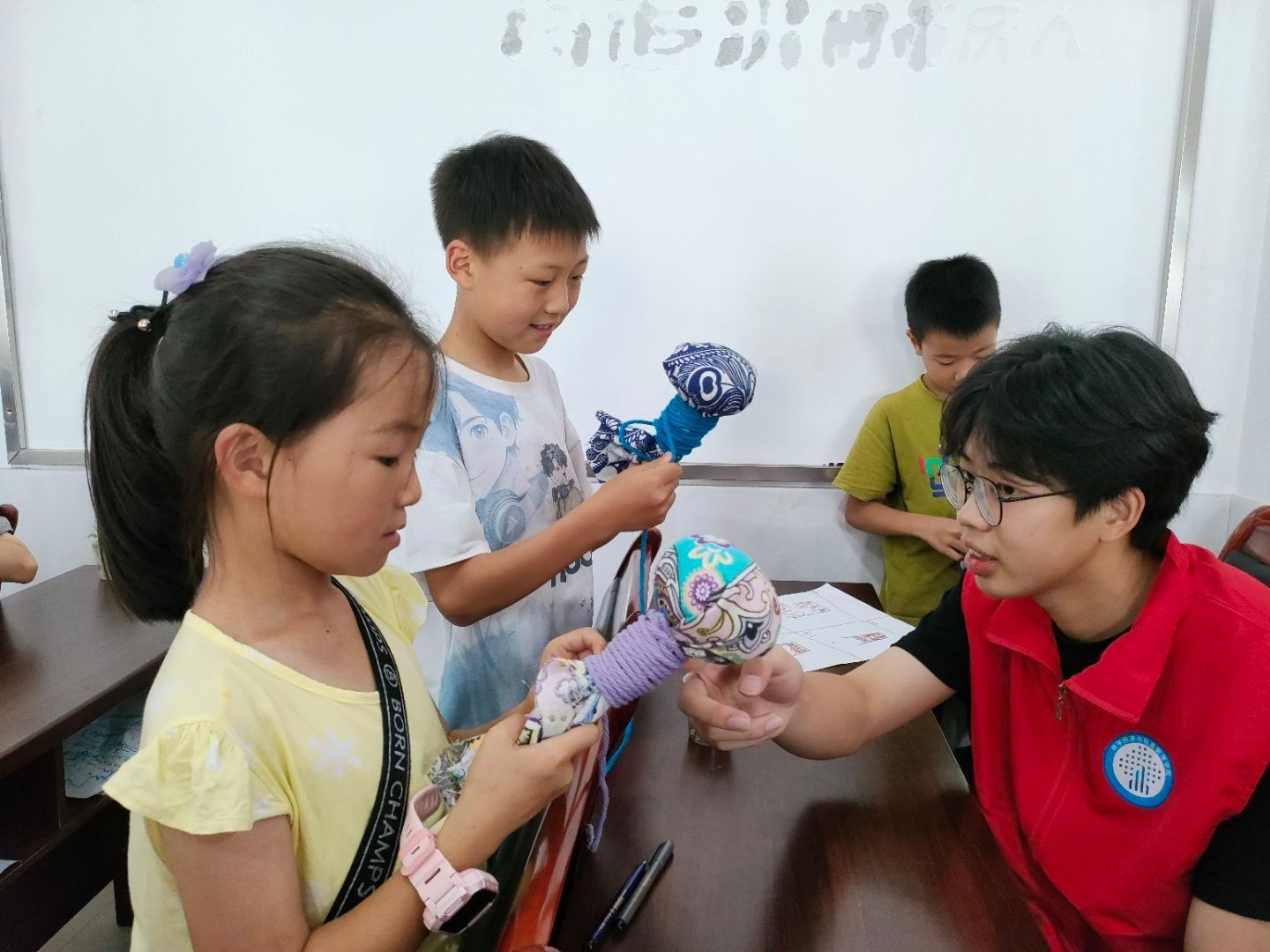 7月6日下午的中医课堂,充满了艾草的清香。志愿者讲"望闻问切"时,孩子们学着"把脉"的样子互相搭手腕,引得哄堂大笑;辨识中药材卡片时,大家凑在一起讨论"金银花是不是金色和银色的"。制作艾草锤环节,孩子们认真地往布包里填艾草,针脚歪歪扭扭却格外用心,有人还系上了彩色流苏。最热闹的是"中药撕名牌",背上"柴胡""金银花"名牌的孩子们追逐奔跑,喊着"我找到治感冒的药啦",在欢笑声中把药材知识记进了心里。