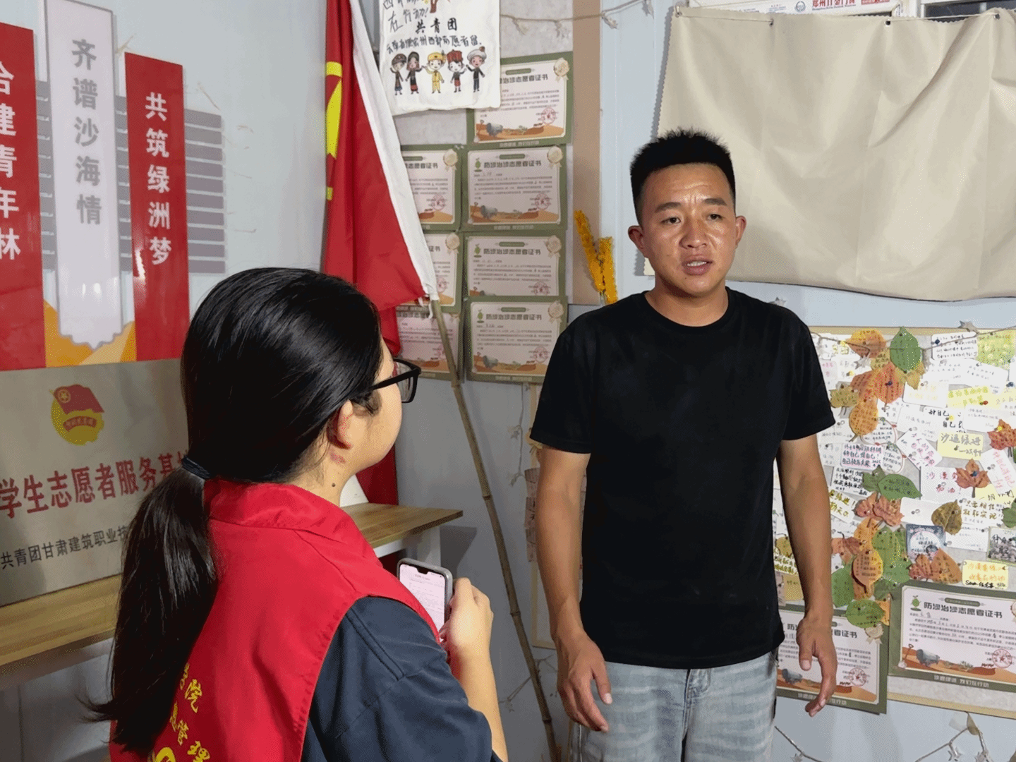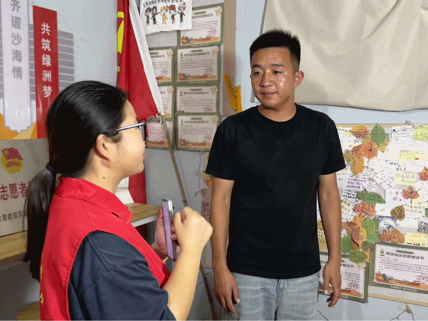 仲麟是土生土长的民勤人,儿时频繁肆虐的沙尘暴,在他记忆中留下深刻印记,家里桌上常落的沙土,是他童年对家乡环境最直观的感受。他也曾怀揣着对外面世界的憧憬与向往,渴望走出这片被风沙笼罩的土地,去追寻更广阔的天地。然而,当真正站在离乡的岔路口,内心对家乡的眷恋却如汹涌的潮水,将他紧紧包围,让他难以割舍。父辈们农闲时自发种树、默默坚守的身影,如同一束光,穿透了他内心的迷茫。他坚信,读书不是为了逃离,而是为了更有力量地建设家乡。于是,毕业后他毅然决然地回到民勤,以青春为笔,以汗水为墨,在这片荒芜的沙漠上,踏上了充满挑战与希望的治沙之路,书写着属于自己的奋斗篇章。