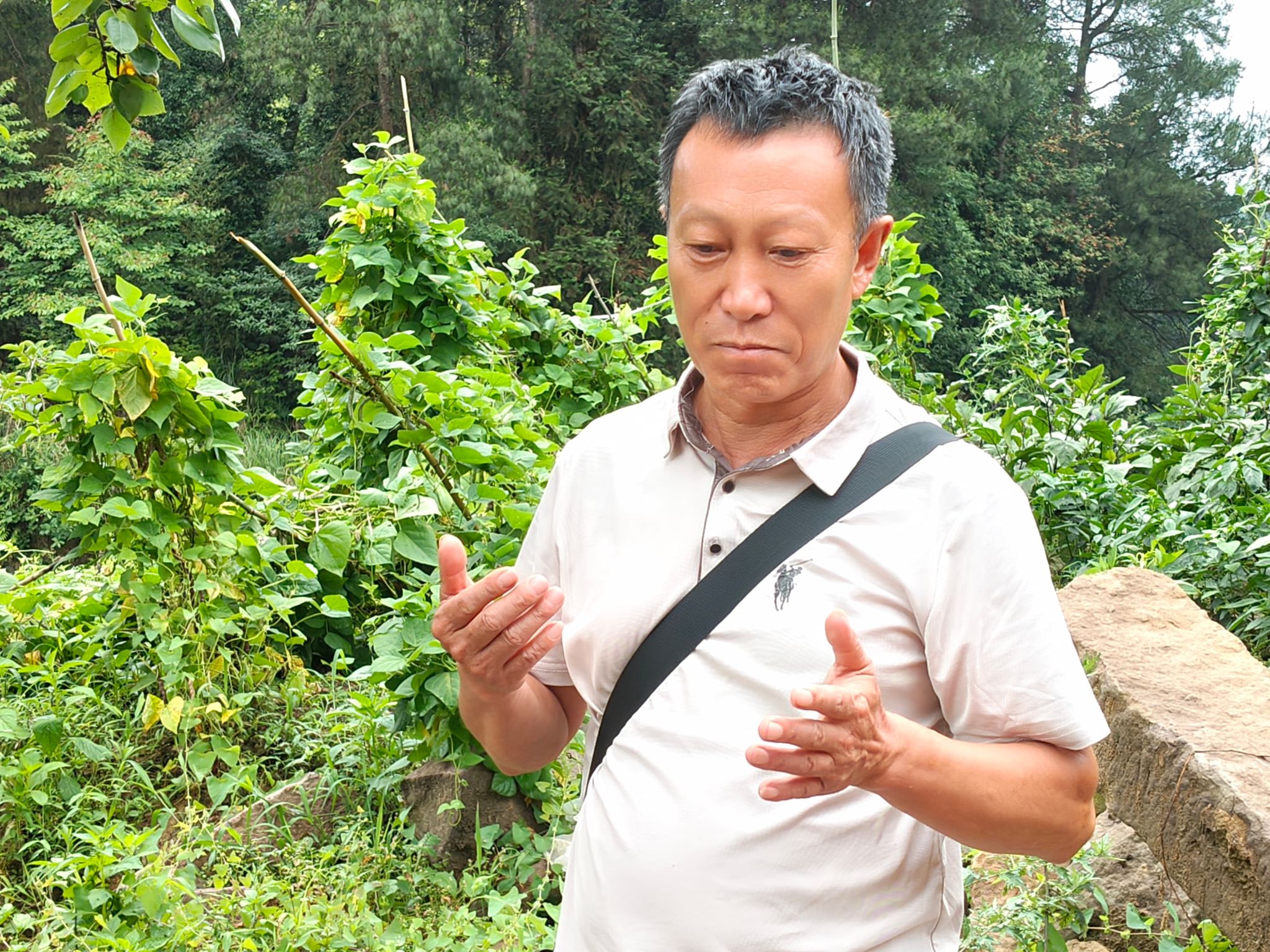 他们首先来到神秘的天神坛遗址,这里曾是古老仪式的举行地,虽历经岁月洗礼,残垣断壁间仍能让人感受到曾经的庄严与神圣。邓书记指着一处刻有云纹的基石,对志愿者说:“这里经过历史的风吹日晒,已经变得残破了,但是这里的每一处布局都藏着他们对先民的敬畏。通过无人机能拍出‘天圆’的形状,现在肉眼只能看到庄稼了。”志愿者仔细观察着遗址的布局和残留的雕刻,探寻先辈们对天地自然的信仰密码。