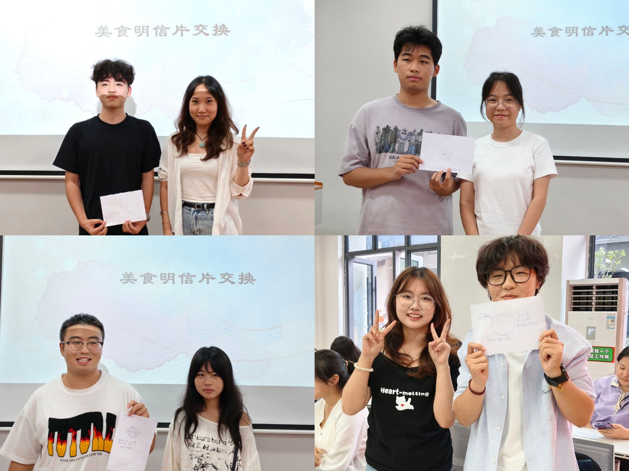 最后的明信片交换”环节,同学们拿起明信片,用画笔描绘出自己喜爱的美食,还写下一段关于美食或方言的感悟,写完后大家随机抽取。一张张明信片,承载着同学们对美食的热爱和对乡土文化的眷恋,在交换中,大家分享着彼此的故事与情感。在欢声笑语中,活动渐渐接近尾声,数字经济商学院社团板块指导老师李巧莹对本次活动进行总结致辞,并表示能看到大家精心准备的家乡特色美食介绍而欣慰,希望通过这“美食次活动让更多同学了解到不同地区的方言和美食文化。