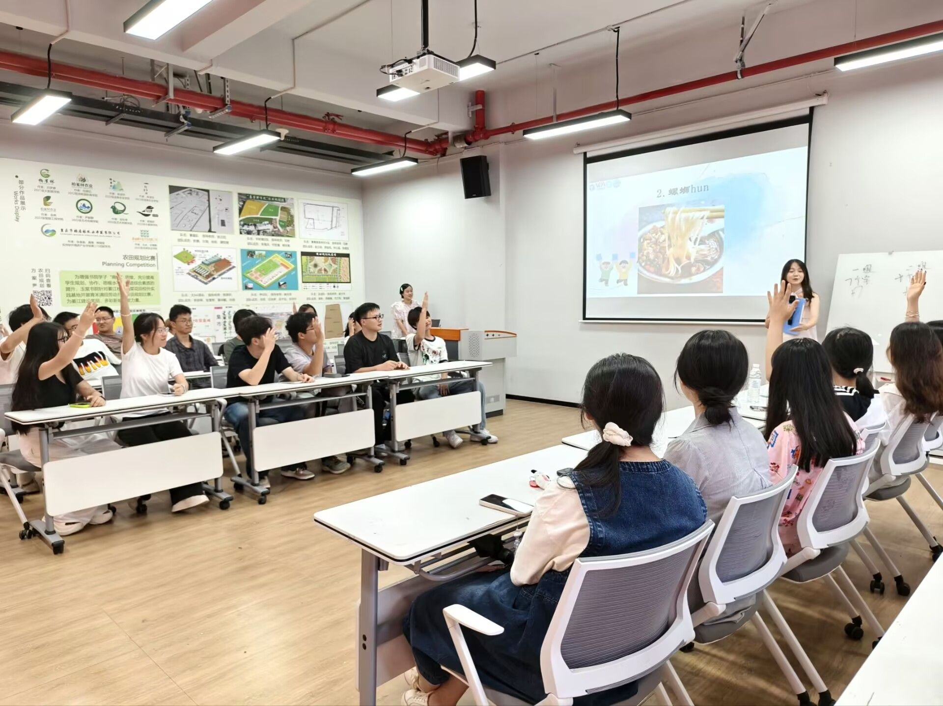 在“各地美食分享”环节,被随机抽取的同学,读出自己写的30字左右关于美食的方言内容,与大家分享,并简要介绍美食的做法和口味。有同学用东北方言分享锅包肉,“这锅包肉啊,得把肉片挂糊,搁油里炸得金黄,再浇上酸甜的汁儿,老好吃了”;还有同学用粤语分享肠粉,“肠粉要选米浆,蒸得薄薄的,加上酱油、虾仁,好味到爆”,让大家在方言的抑扬顿挫中,仿佛尝到了各地美食的独特风味。
