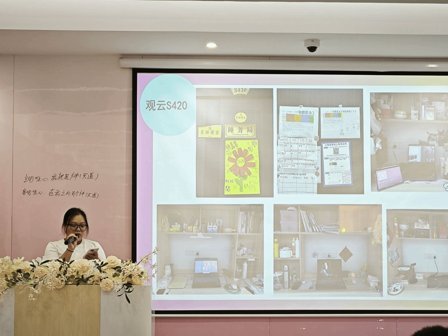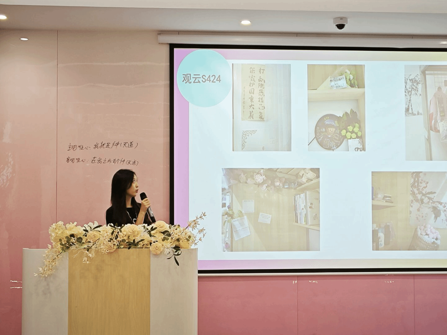 活动尾声,张倩老师为本次大赛作总结分享。她表示:“寝室是同学们未来四年朝夕共处的‘家’,这方小小空间不仅承载着大家的大学生活,更见证着彼此的成长与蜕变。希望通过本次创意装扮大赛,同学们能进一步发掘寝室的美好,持续以巧思与创意装点这个‘小家’,使其成为有温度、有活力、有归属感的心灵港湾。”