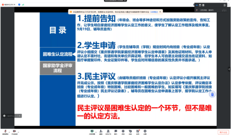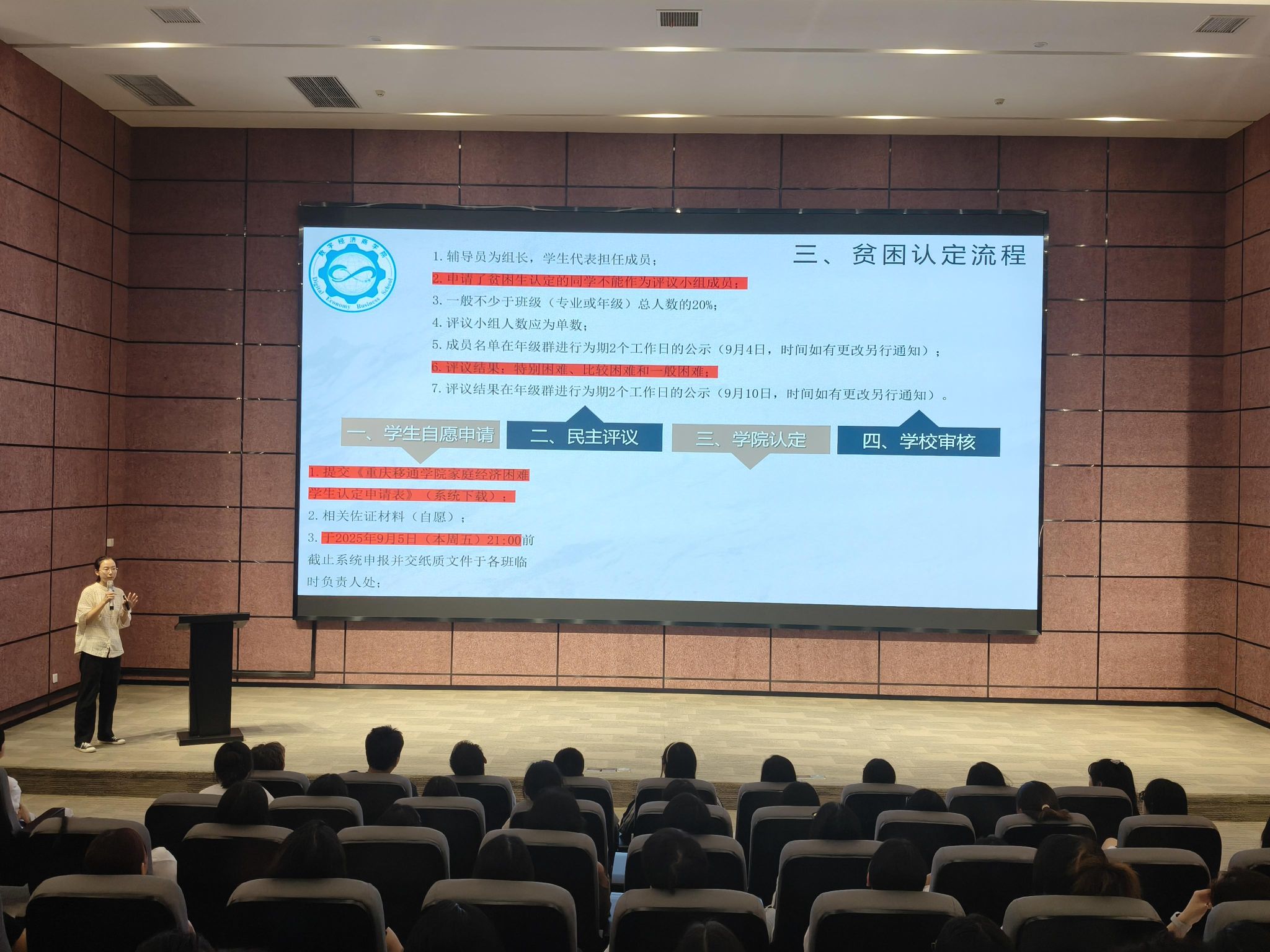 为切实做好2025-2026学年家庭经济困难学生认定工作,精准落实国家及学校资助政策,保障有需求的学生及时获得帮扶,近期,数字经济商学院统筹部署,组织各专业年级辅导员以线上或线下方式,分层分类开展家庭经济困难学生资助政策专题宣讲会,覆盖全院学生,确保资助政策精准传达至每一位有需要的学生。