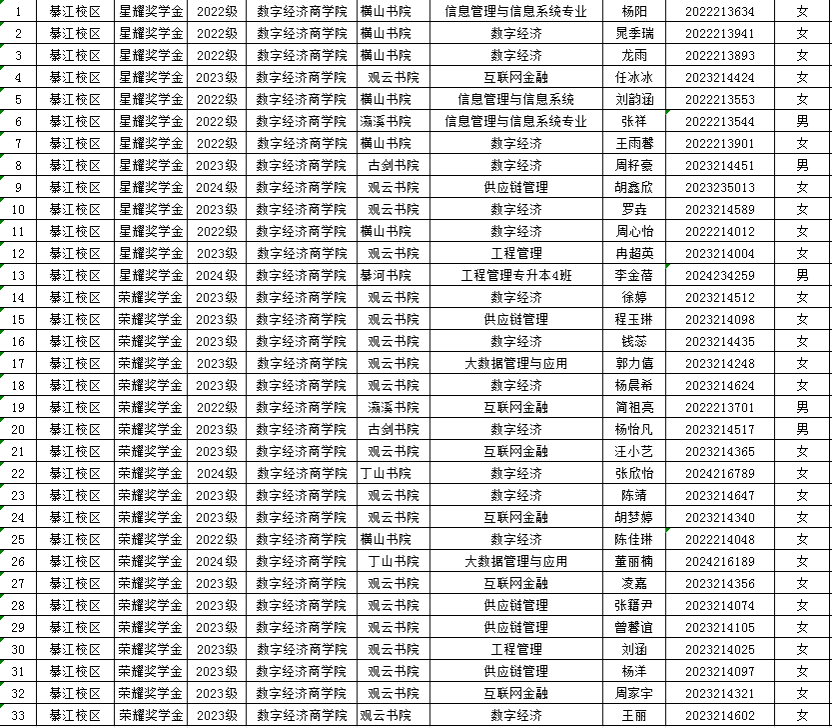 为更好地激励学生积极参与学校的完满各项活动及工作,让榜样引领学生,让典范教育学生,为我校完满教育营造一个青春向上的氛围,进一步促进学生德智体美劳全面发展,根据《重庆移通学院完满教育奖学金评选办法(试行)》的通知,现将2024-2025学年完满教育奖学金数字经济商学院入选拟推荐名单公示如下: