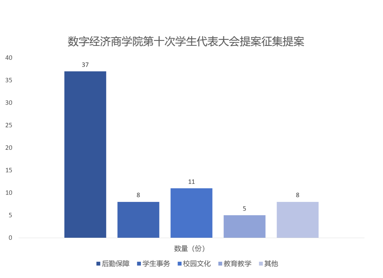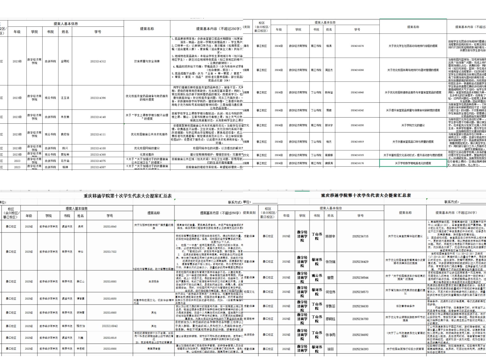 为切实发挥学生代表大会的桥梁纽带作用,充分倾听学生诉求、汇聚学子智慧,我院积极响应重庆移通学院第十次学生代表大会提案征集工作,在全院范围内高效组织、有序推进。截至9月26日征集结束,共收到各类有效提案69份,涵盖教育教学、学生事务、后勤保障、校园文化及其他五大类别,为学校发展注入青春智慧。