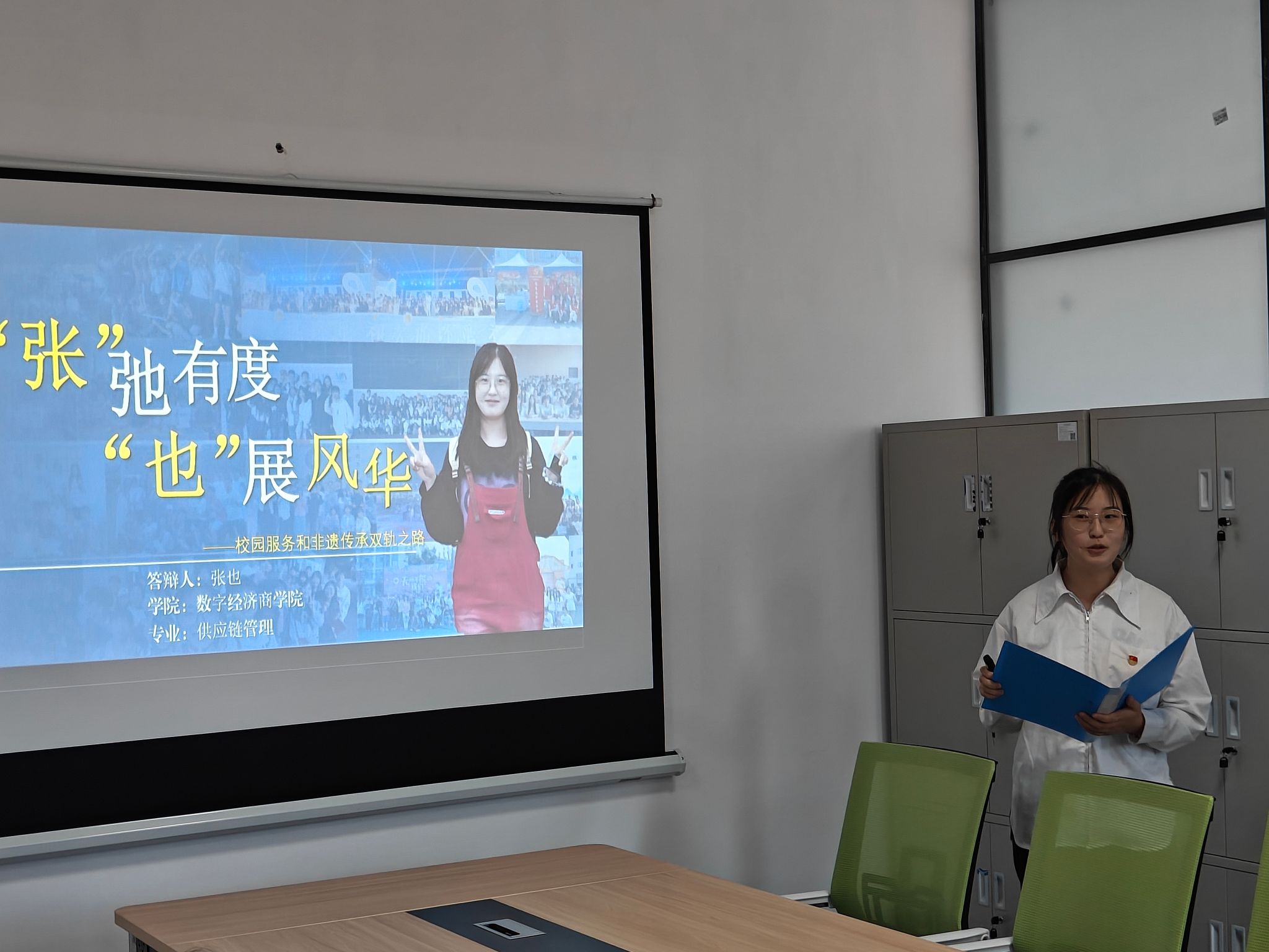 “我如白杨,心向朝阳”,杨阳同学的汇报充满温暖与力量。她展示了以往运营媒体账号取得的优异成果,并呈现多张精美海报,为答辩增添视觉亮点。“白杨的‘直’,是坚守初心的执着;白杨的‘韧’,是直面困难的勇气。”她的讲述深深打动在场师生,“奉献”成为整场答辩的温暖注脚。