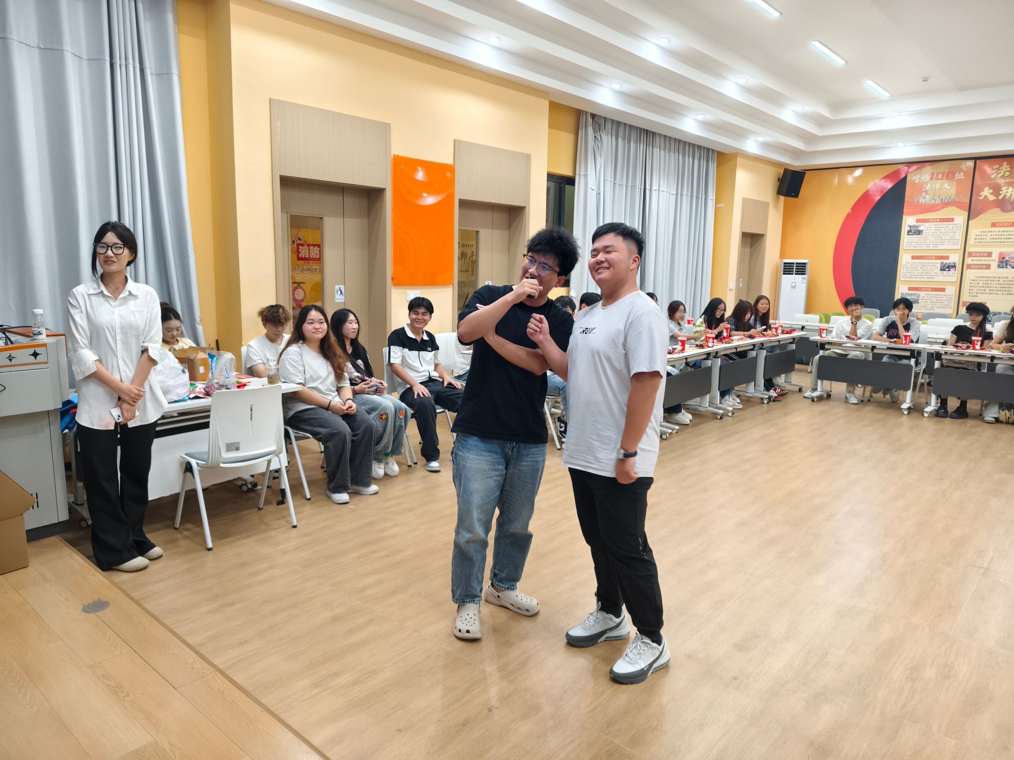 活动接近尾声,青协指导老师郑业坤与钱蕊书记分别登台展示才艺,活力四射的表演瞬间点燃全场,赢得了新干事的热烈掌声与欢呼,也让大家感受到来自老师和书记的关怀与支持。