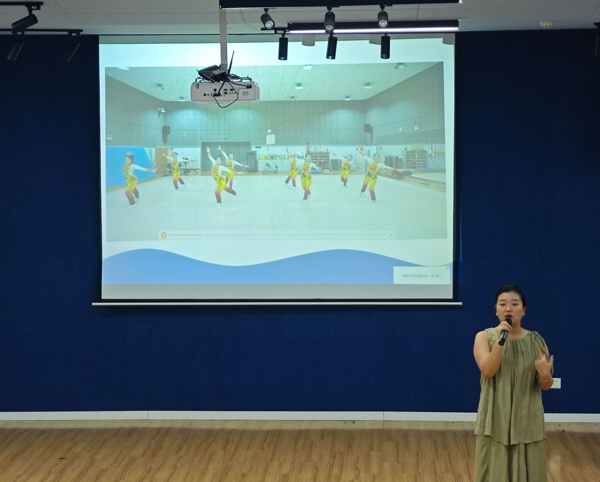 活动伊始,主持人付孟文老师与大家分享了往届啦啦操比赛的精彩瞬间与宝贵经验,带领同学们回顾充满活力与激情的舞台时刻,帮助大家更直观地了解赛事。随后,指导教练蒋佳源老师播放了多所高校优秀啦啦操团队的表演视频,涵盖花球、啦啦操等多种舞蹈形式,展示了多样的队形编排与动作设计。在互动环节,同学们积极提问,工作人员结合视频案例与赛事经验一一细致解答,现场气氛热烈,交流融洽。