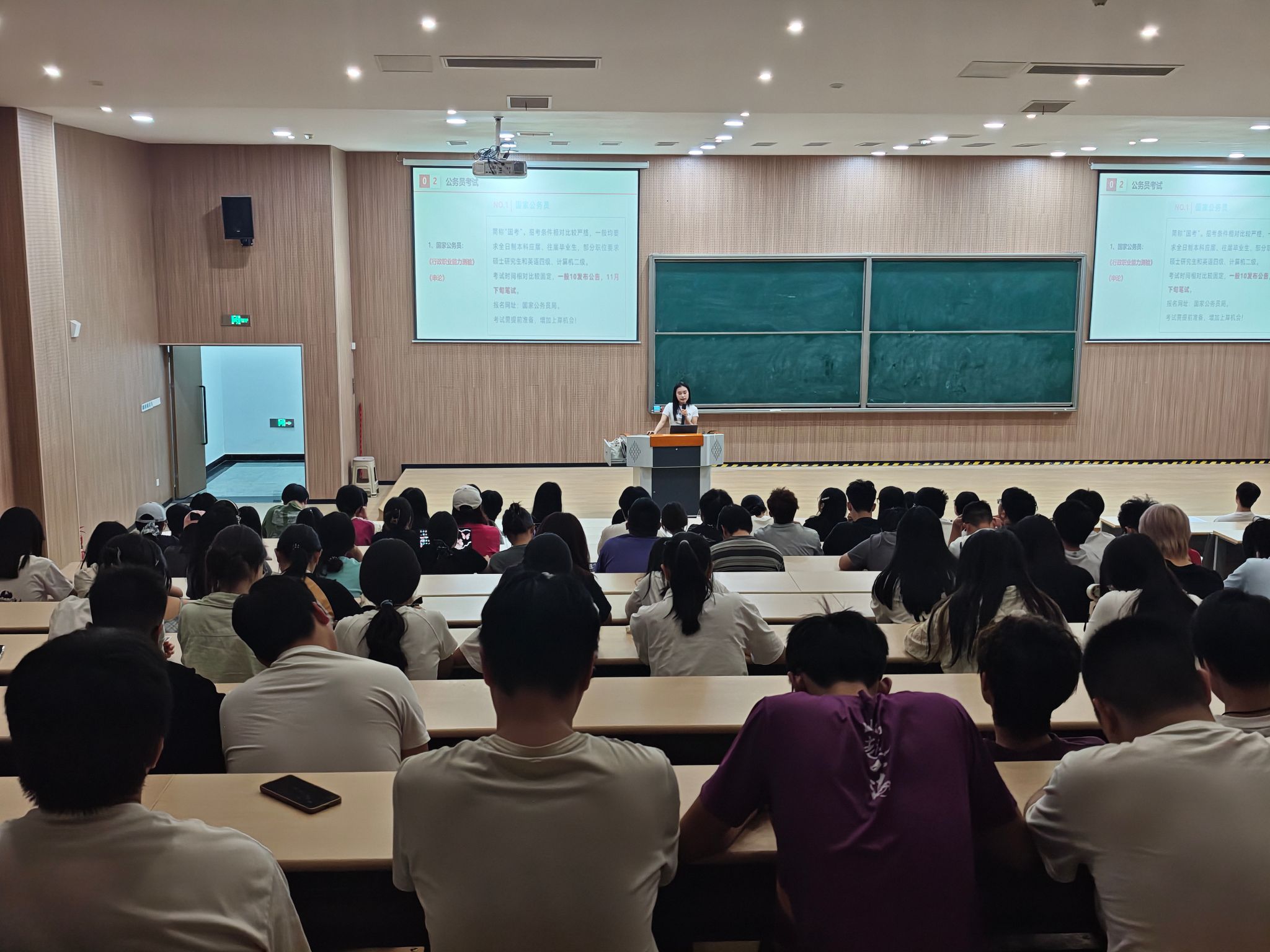 考虑到不少学生有考公考研的打算,但对国考、省考和事业编区别认识不清,李老师通过表格清晰展示三者在难度、考试时间、招录规模等方面的差异,帮助同学们根据自身期望合理选择与准备。