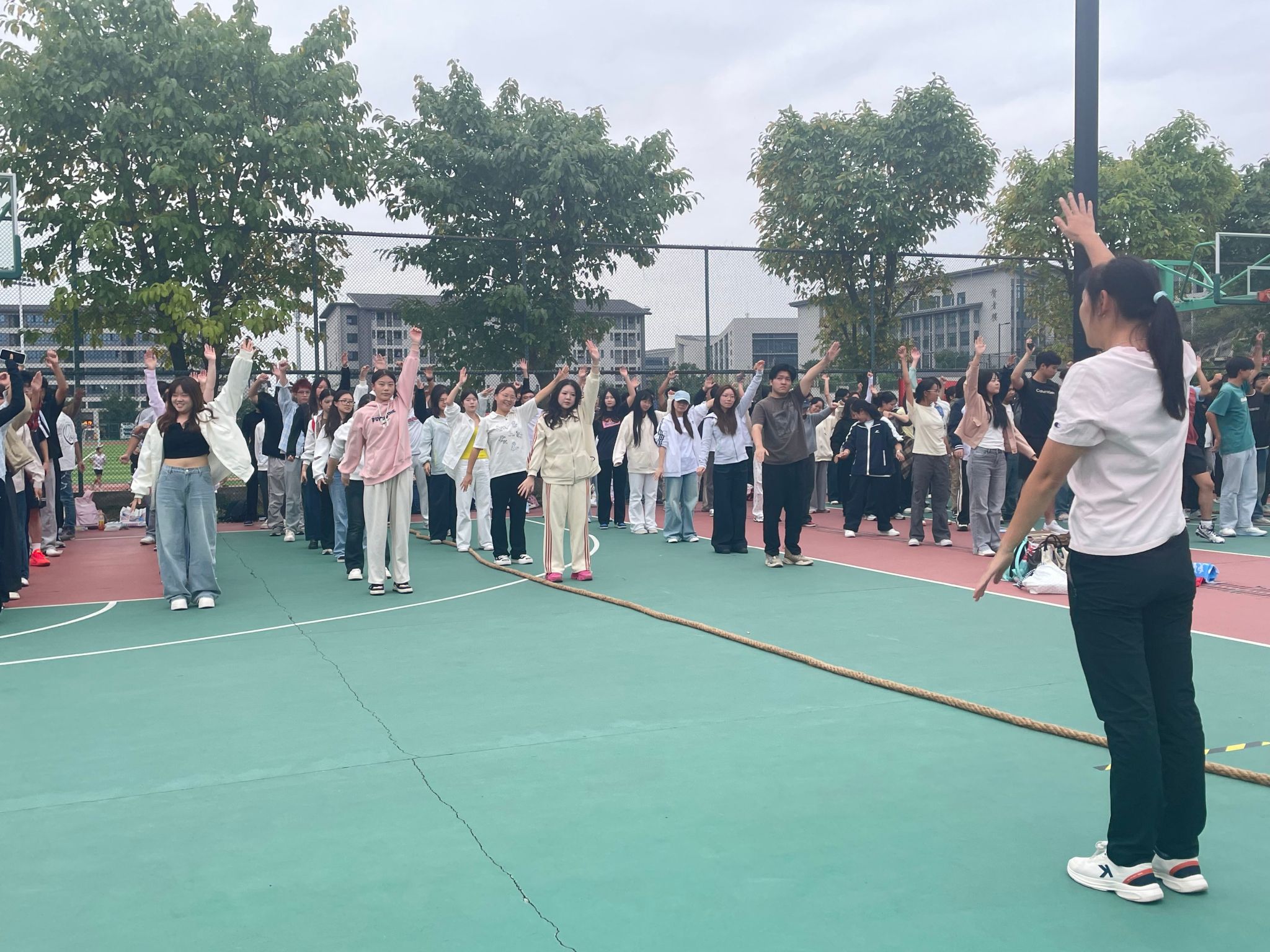 为确保比赛的专业性与竞技性,本次活动特邀原国家队铁人三项运动员、现校铁人三项队教练马明秀老师讲解比赛要领。马老师详细演示了握绳手法、发力技巧、身体姿势及团队配合策略,并带领所有参赛队员进行热身训练,帮助大家在比赛中更好发挥。现场氛围迅速升温,青春活力与运动热情洋溢赛场,同学们跃跃欲试,期待一展身手。