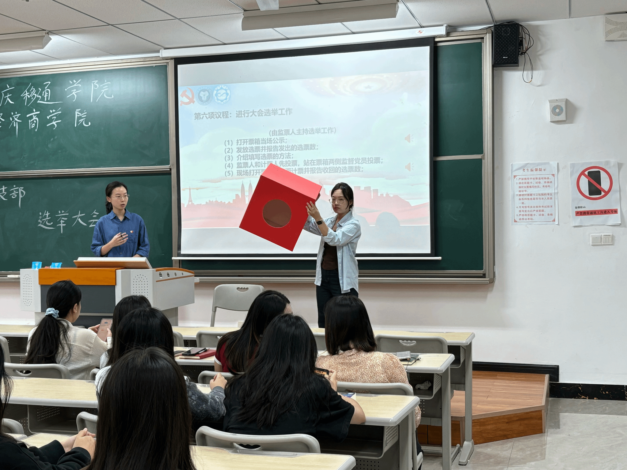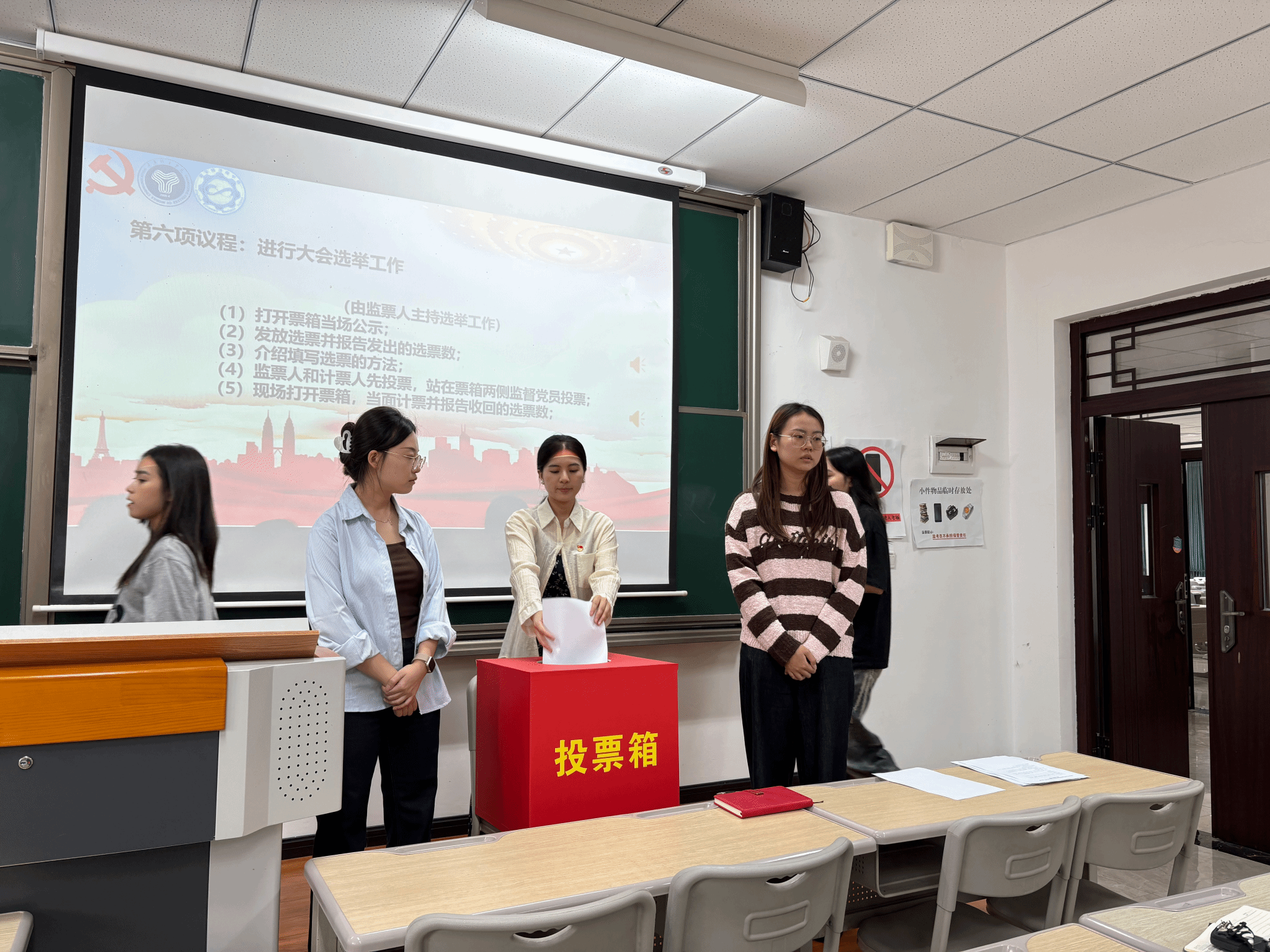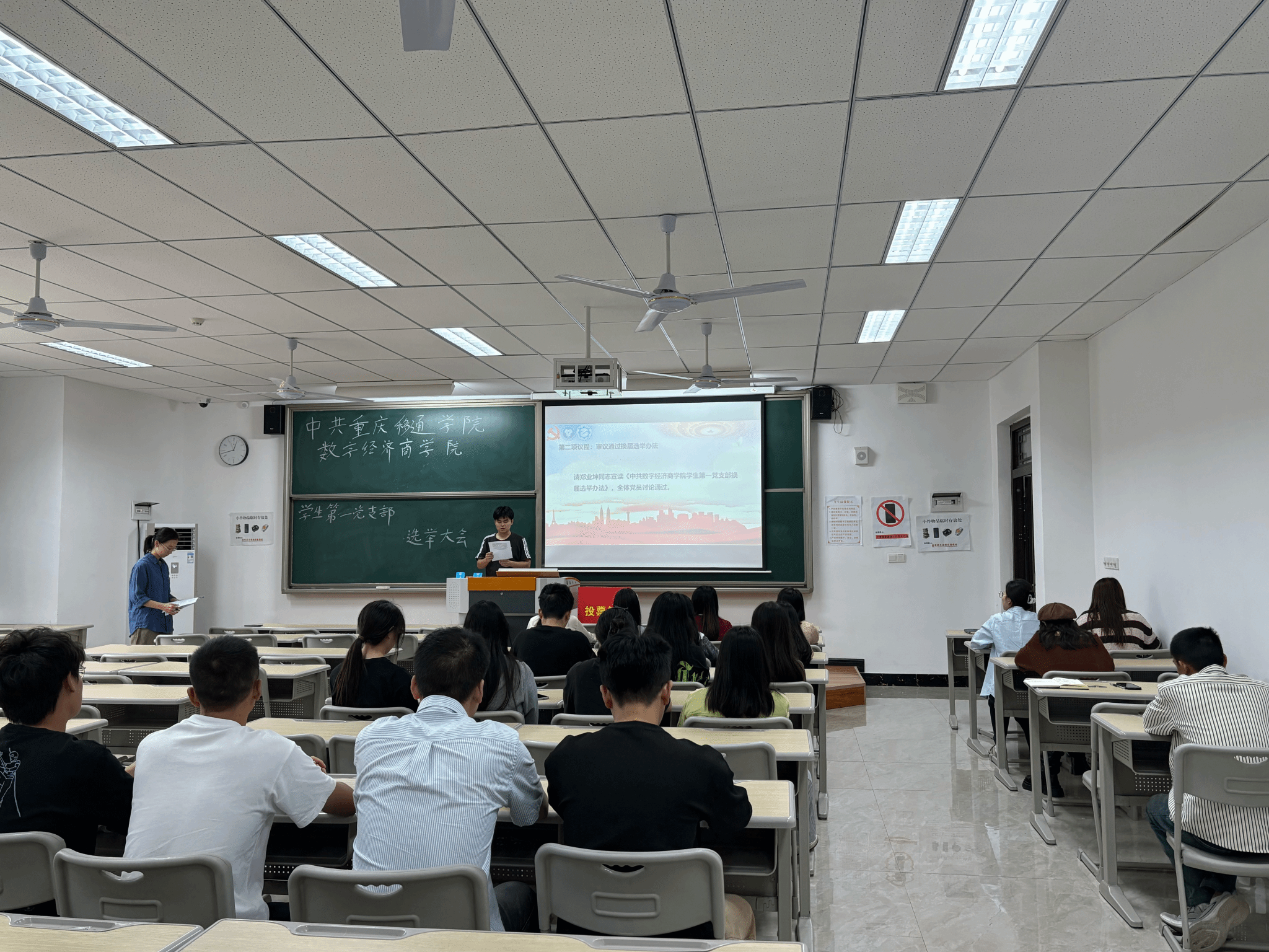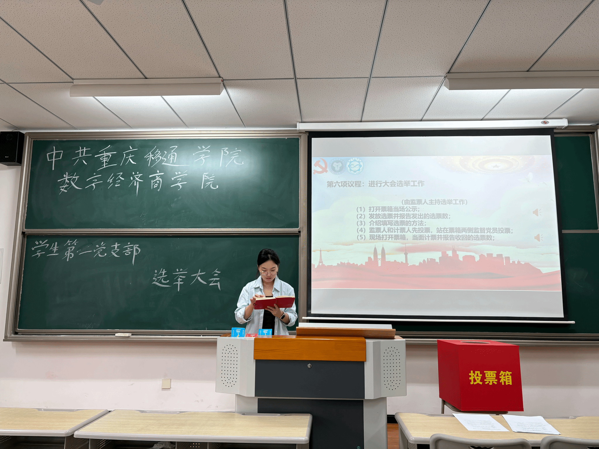 随后,郑业坤同志宣读《中共重庆移通学院数字经济商学院学生第一党支部选举办法》,详细介绍选举规则与流程,办法经与会全体党员讨论通过。会议就新一届党支部委员候选人的产生过程及基本情况作了说明。候选人经民主推荐、组织考察等程序严格筛选,政治素质优良、业务能力突出、群众基础扎实。全体党员对候选人名单进行充分讨论并一致通过。