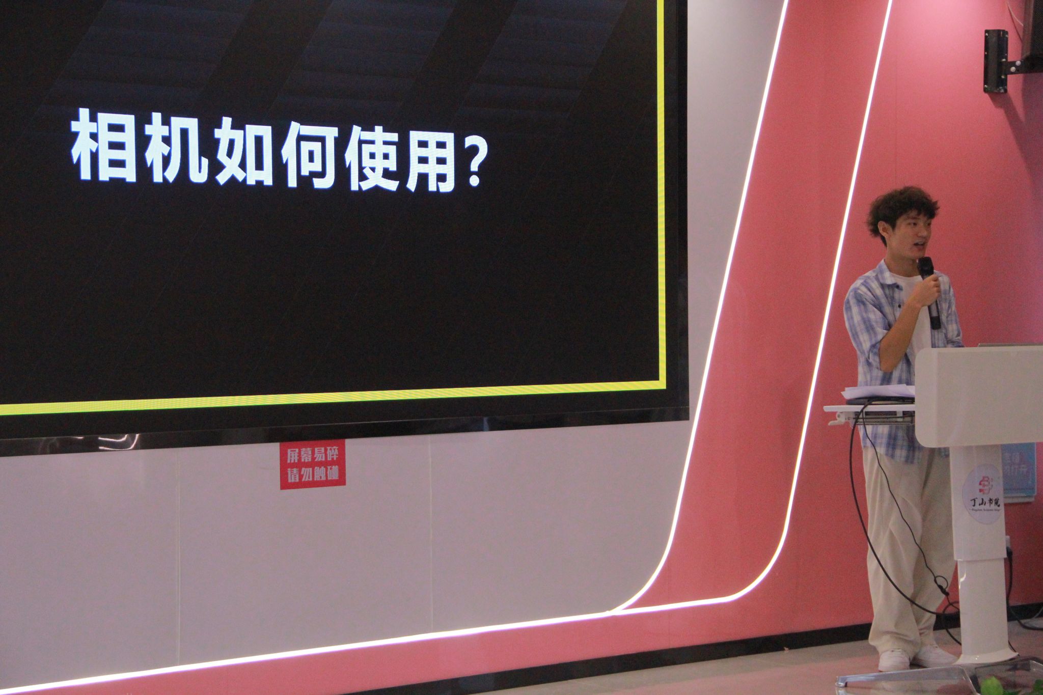 培训专设专业相机设备操作体验环节。主讲人讲解基本使用技巧并分享实拍经验,邀请参训同学参与互动。在主讲人指导下,两名学员使用专业相机进行实景拍摄练习,实现从理论到实践的过渡,巩固所学内容。