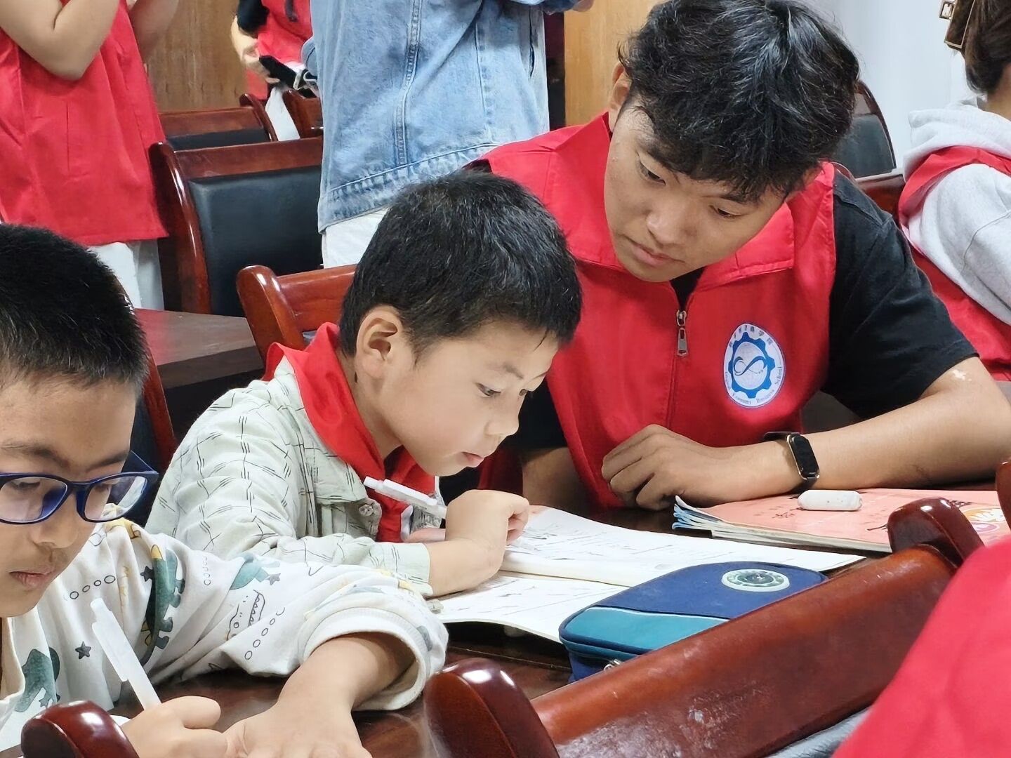 手工活动结束后,志愿者根据孩子们的年级和学科需求,开展"一对一"或"一对多"课业辅导。志愿者不仅是知识的传授者,更是学习路上的引航员,通过启发式教学拆解难点,鼓励孩子自主探索答案,潜移默化地培养独立思考能力。